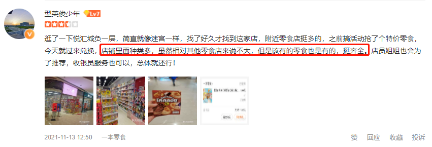 網(wǎng)友評(píng)論一本零食,店鋪不大,但種類多,品類齊全 ▼