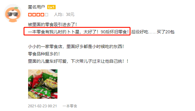 網(wǎng)友評(píng)論一本零食,有90后的懷舊零售,很欣喜 ▼