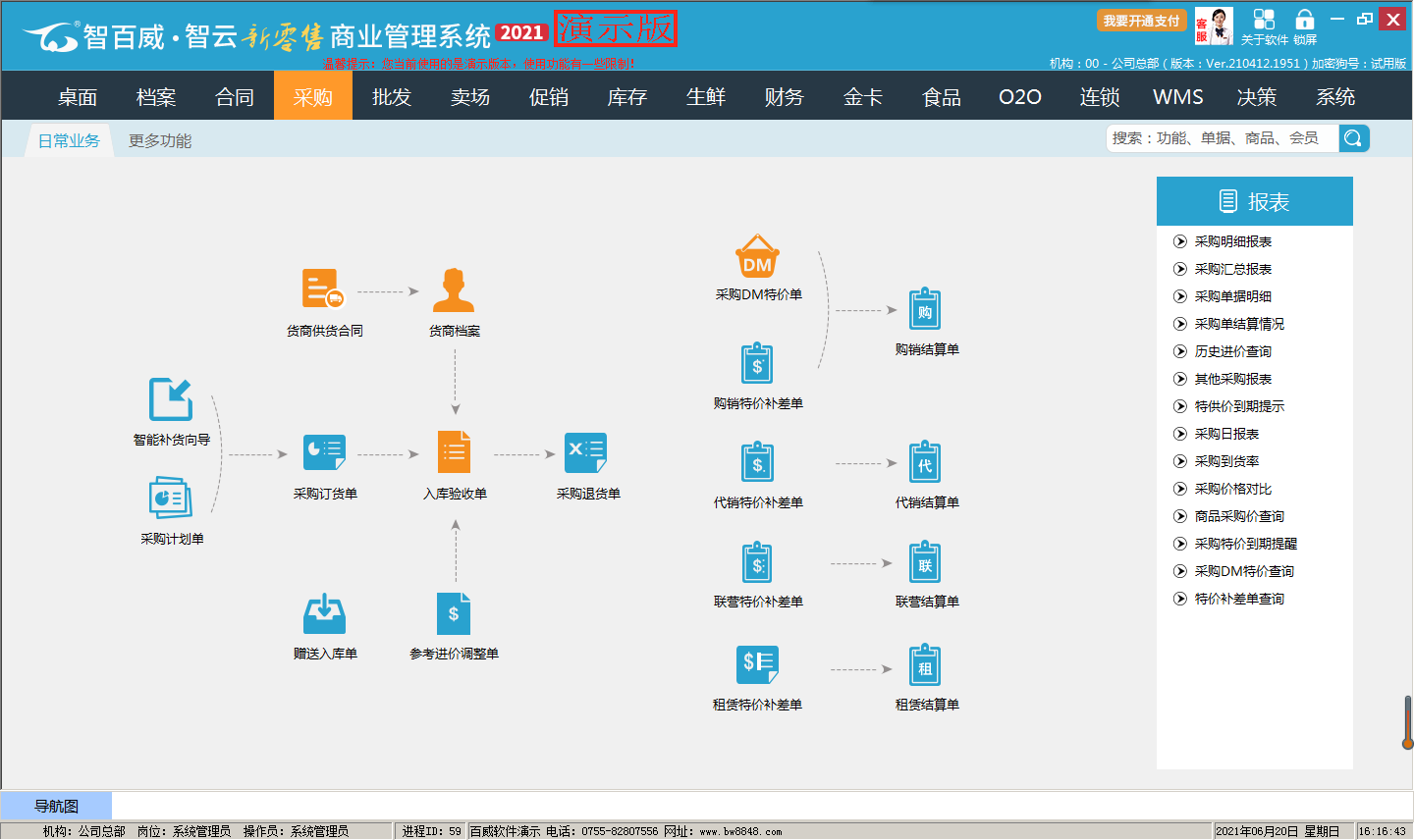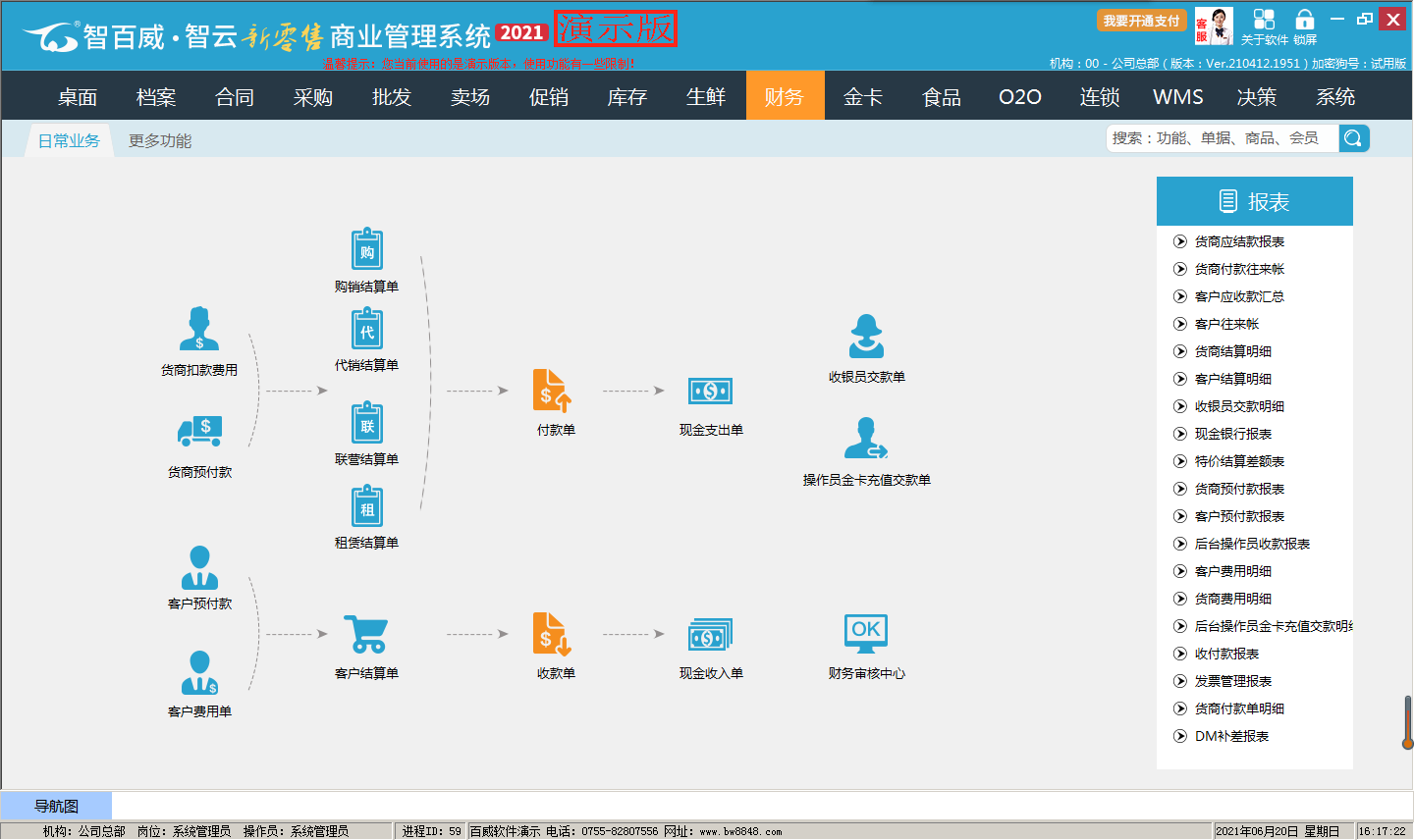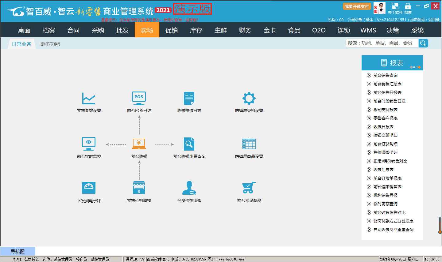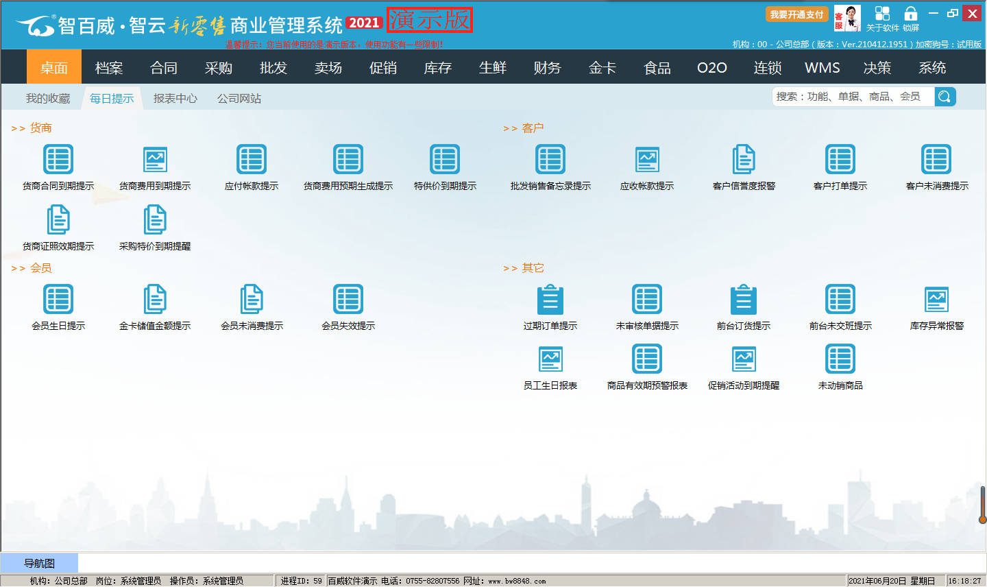 智百威新零售系統(tǒng)后臺分為十六個功能模塊+前臺收銀模塊,精細(xì)化的可以管理到企業(yè)的每個流程,為企業(yè)/門店提供專業(yè)的進、銷、存管理