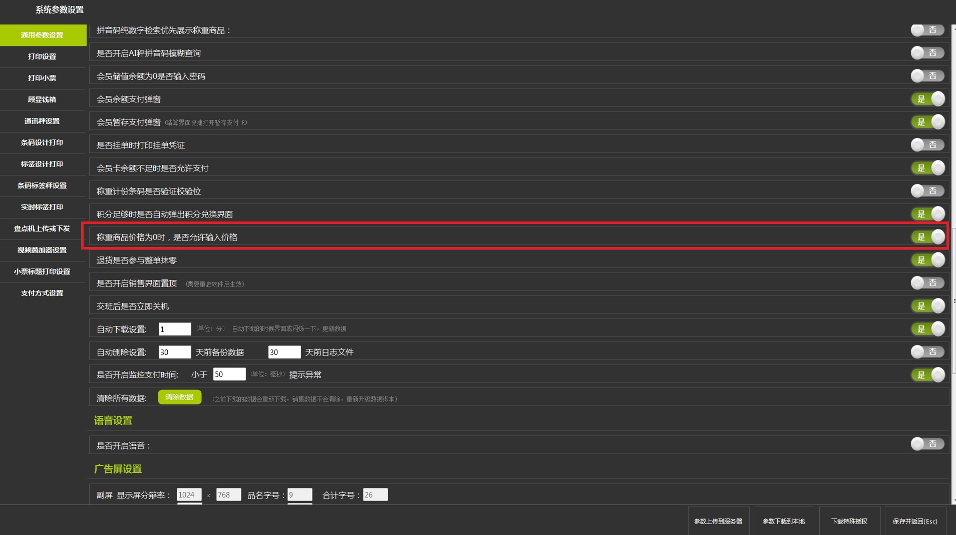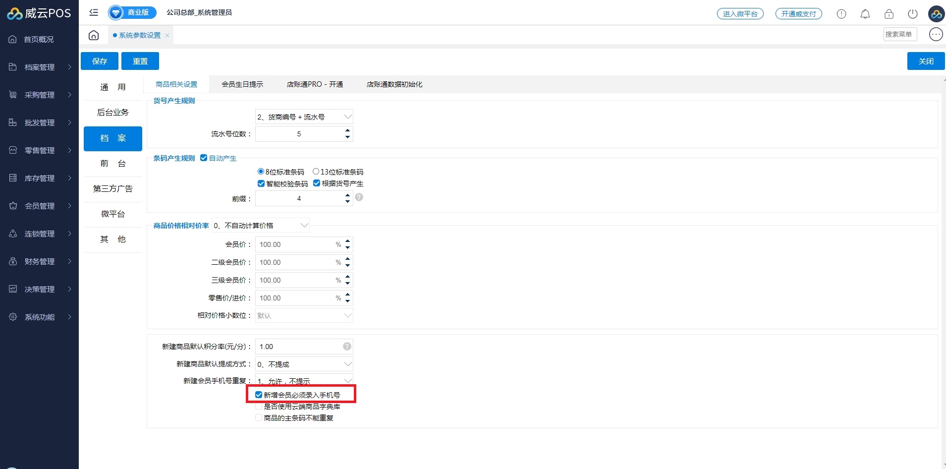 01 威云前臺系統(tǒng)通用參數(shù)增加了散稱不定價商品的功能