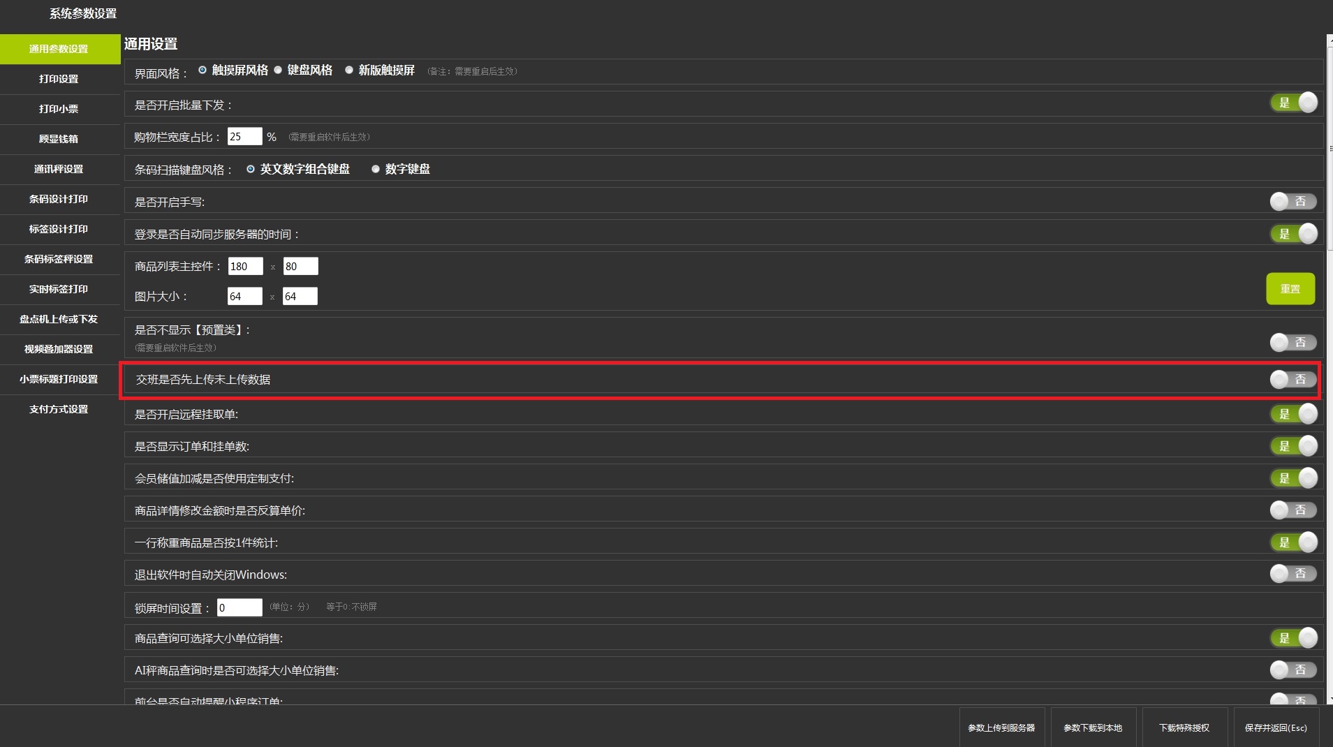 04 威云前臺系統(tǒng)通用參數(shù)增加了交班是否先上傳未上傳數(shù)據(jù)的參數(shù)功能