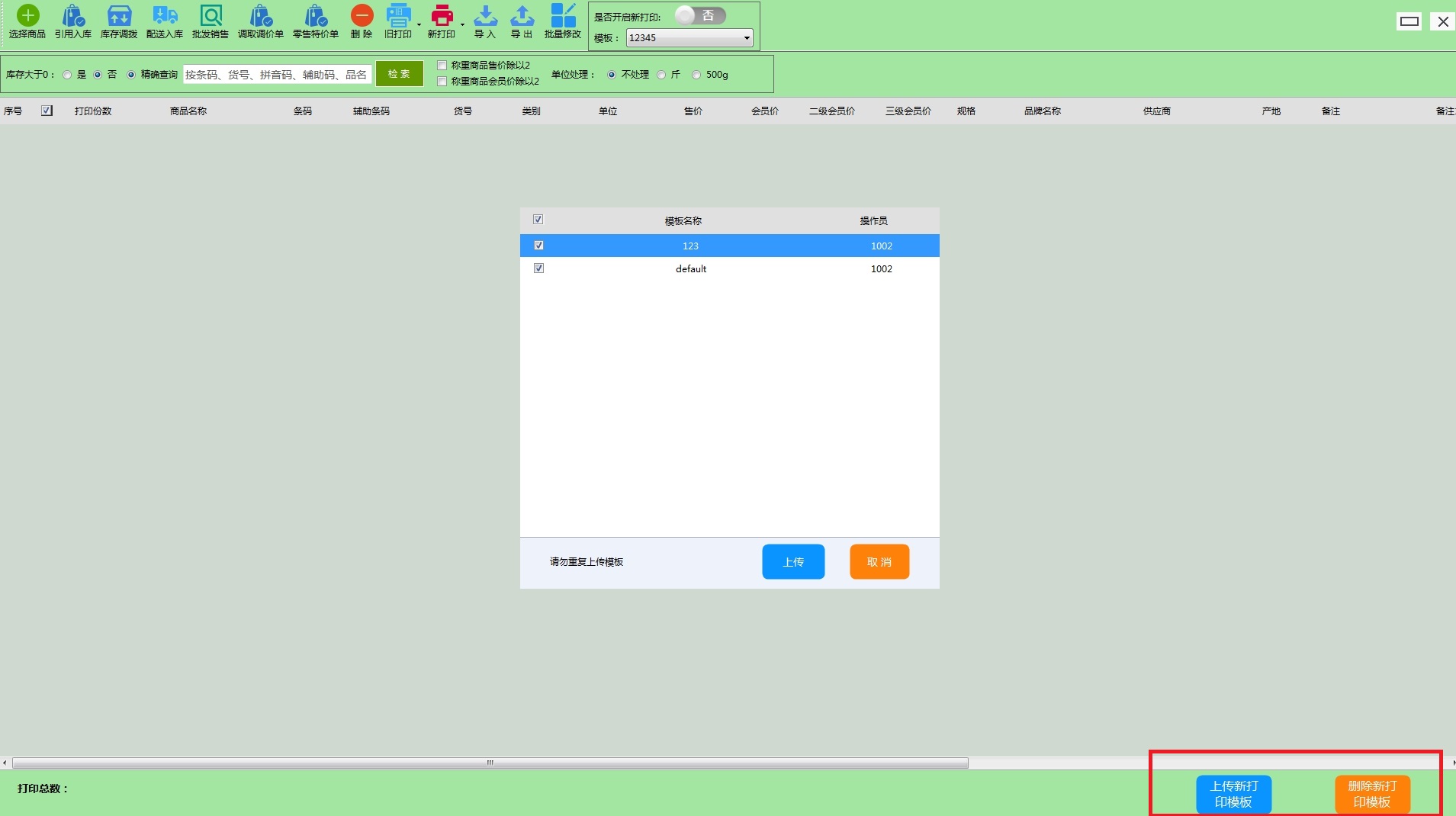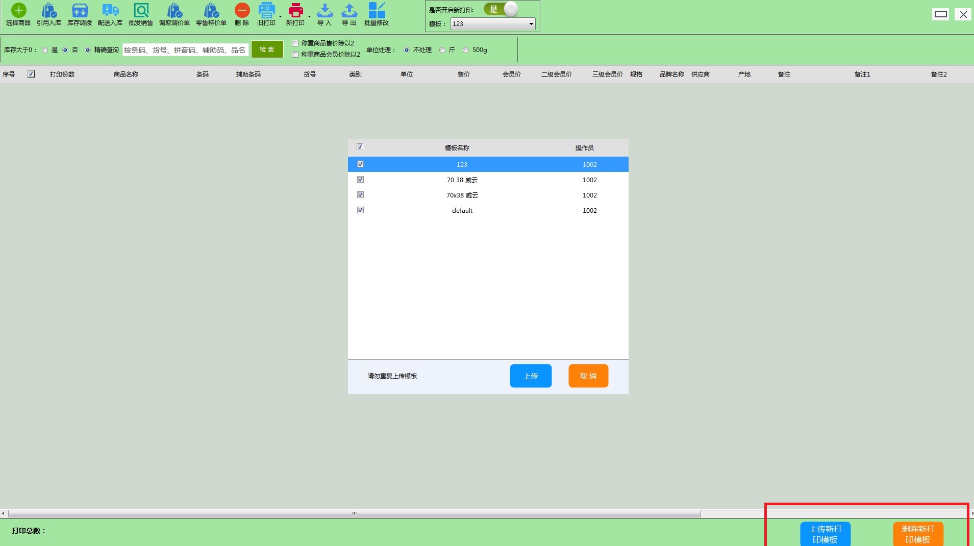 07 威云前臺條碼設(shè)計打印、標(biāo)簽設(shè)計打印增加了上傳新打印模板和刪除新打印模板的功能