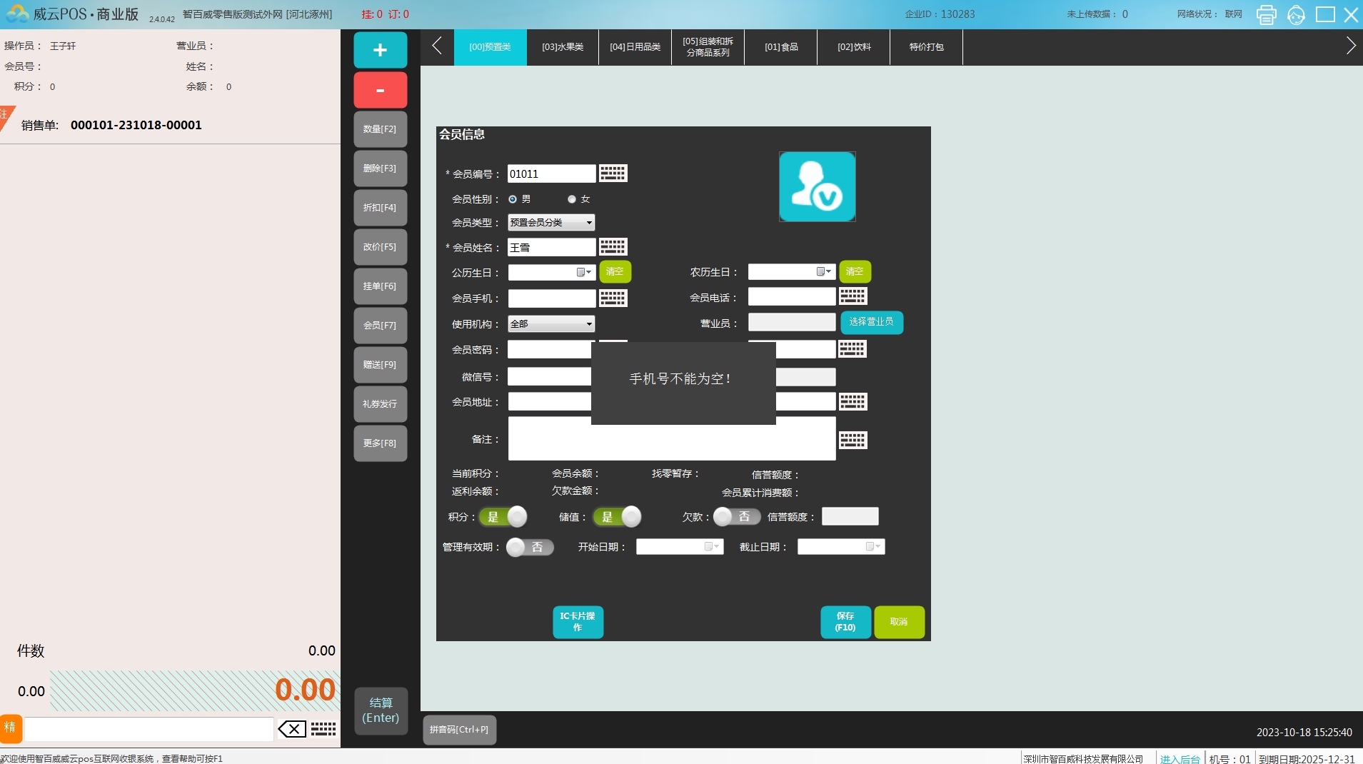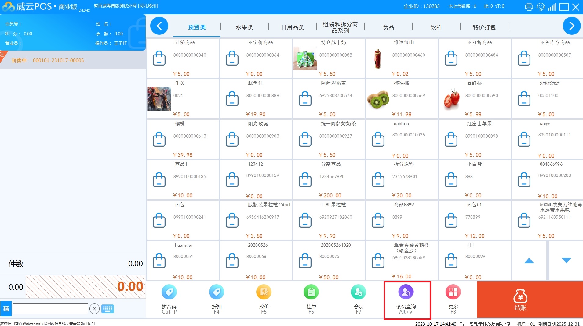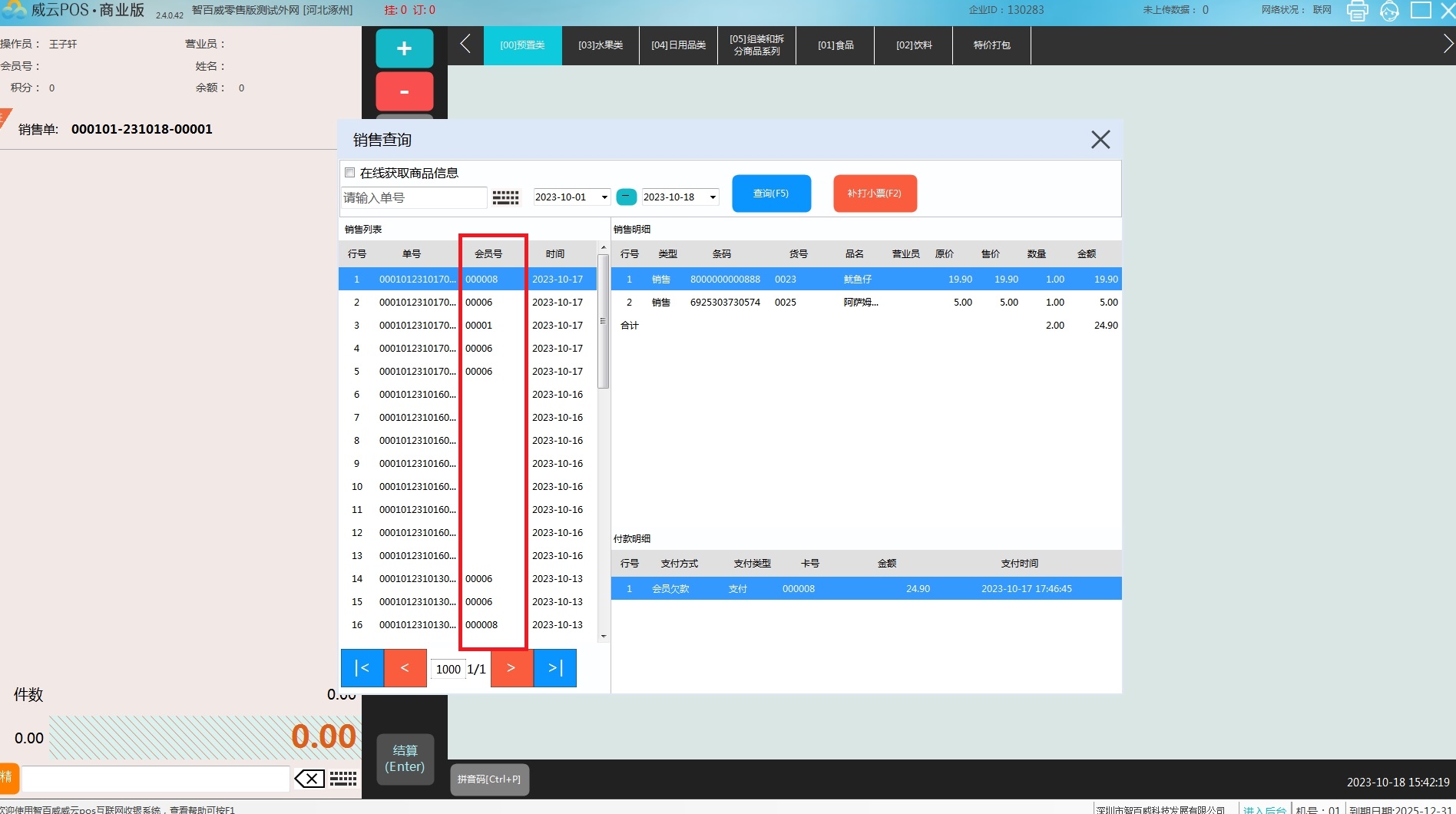 13 威云前臺銷售查詢銷售列表增加了會員號字段顯示的功能