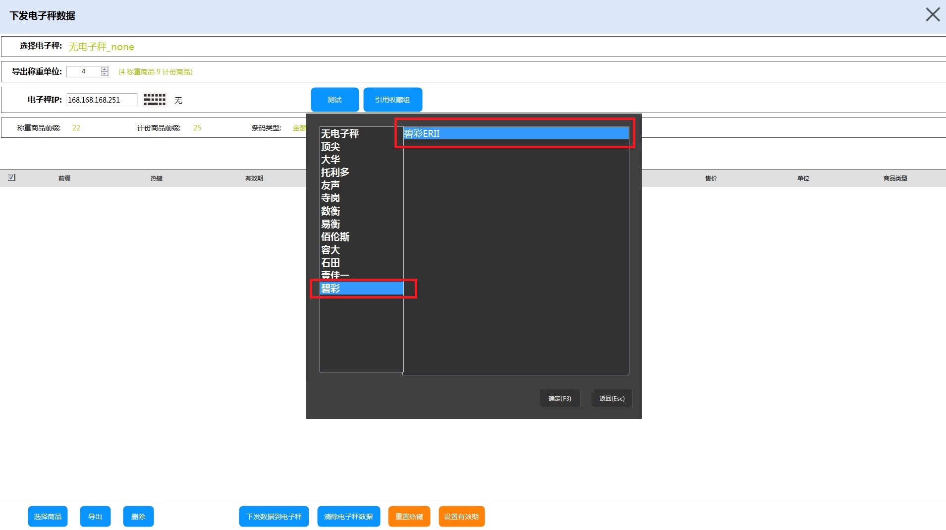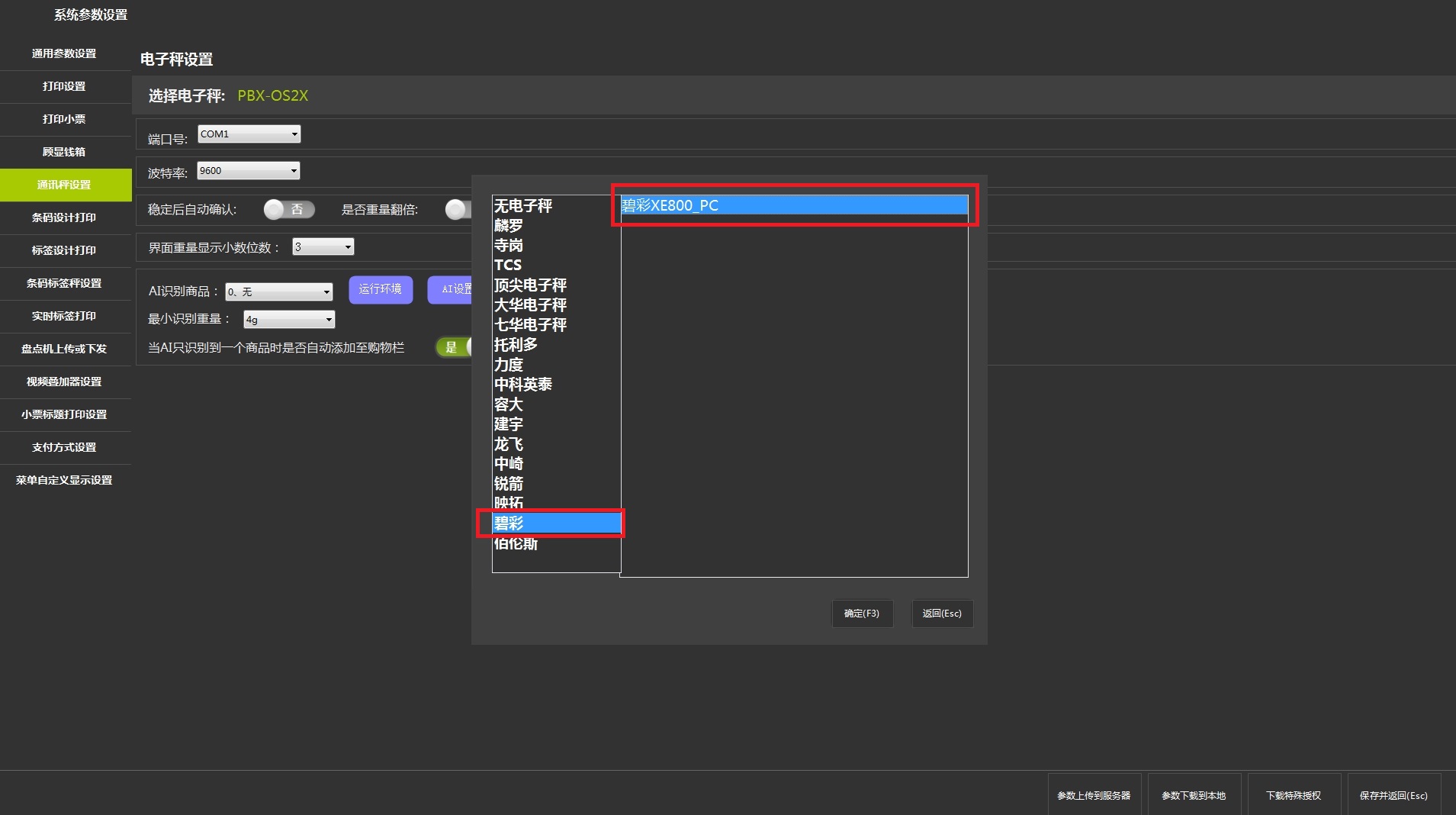 09 威云前臺增加了碧彩 XE800-PC型號通訊秤 和ERII型號下發(fā)秤的對接功能