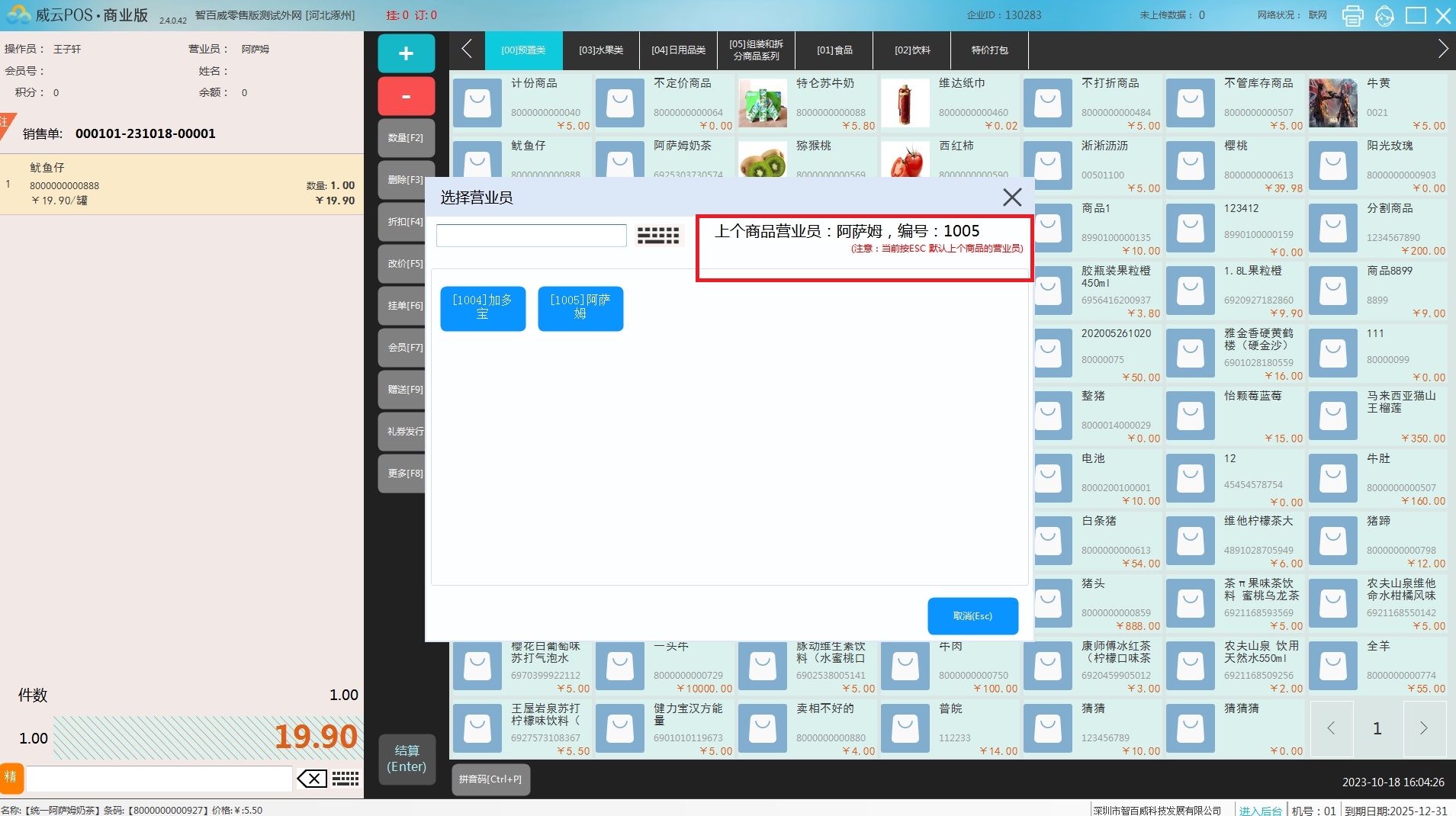 14 威云前臺營業(yè)員選擇增加了默認(rèn)記住上個商品營業(yè)員的功能