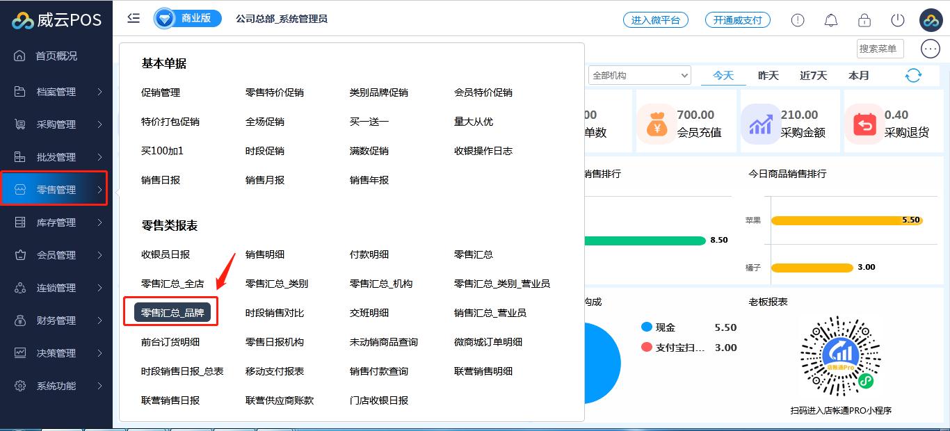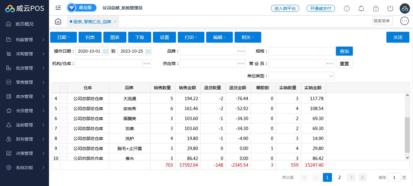 06. 威云后臺零售模塊增加零售匯總-品牌報表功能