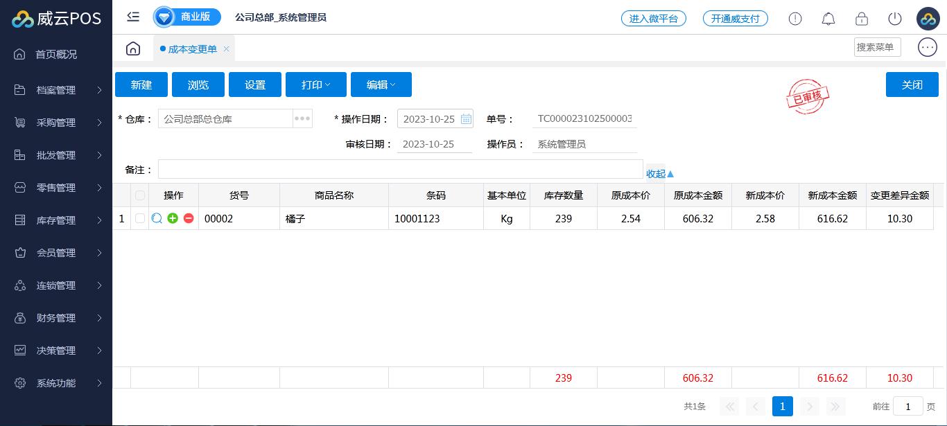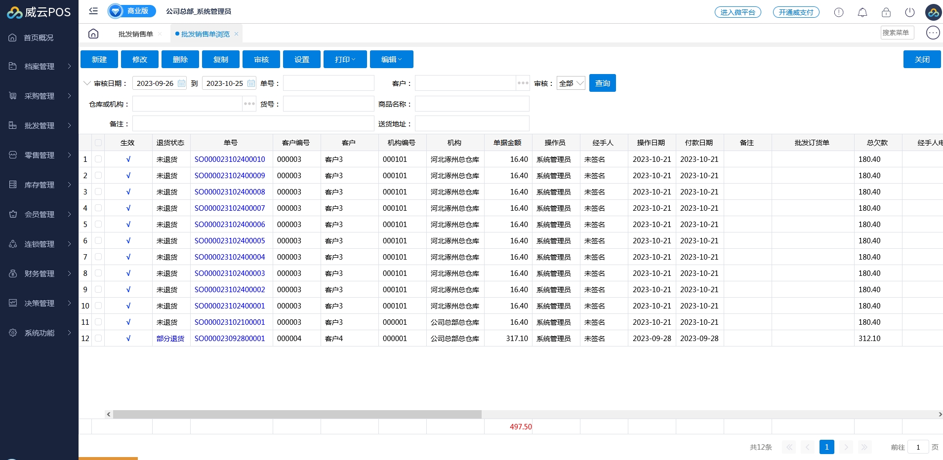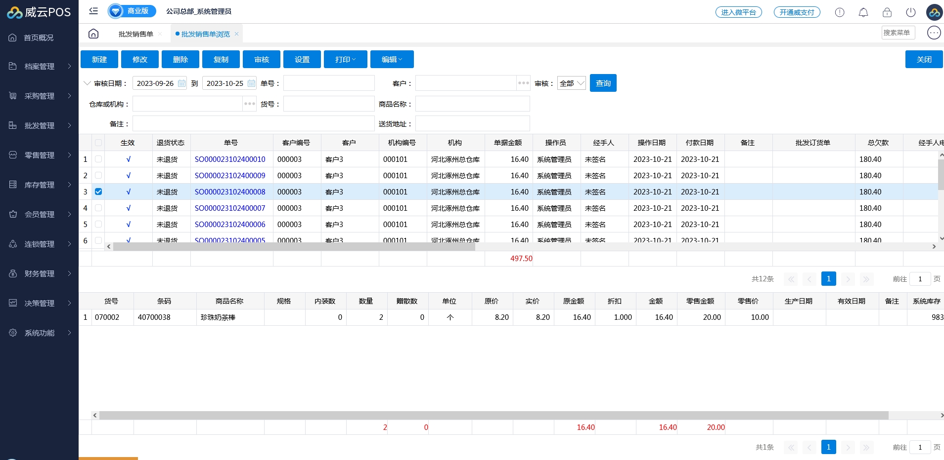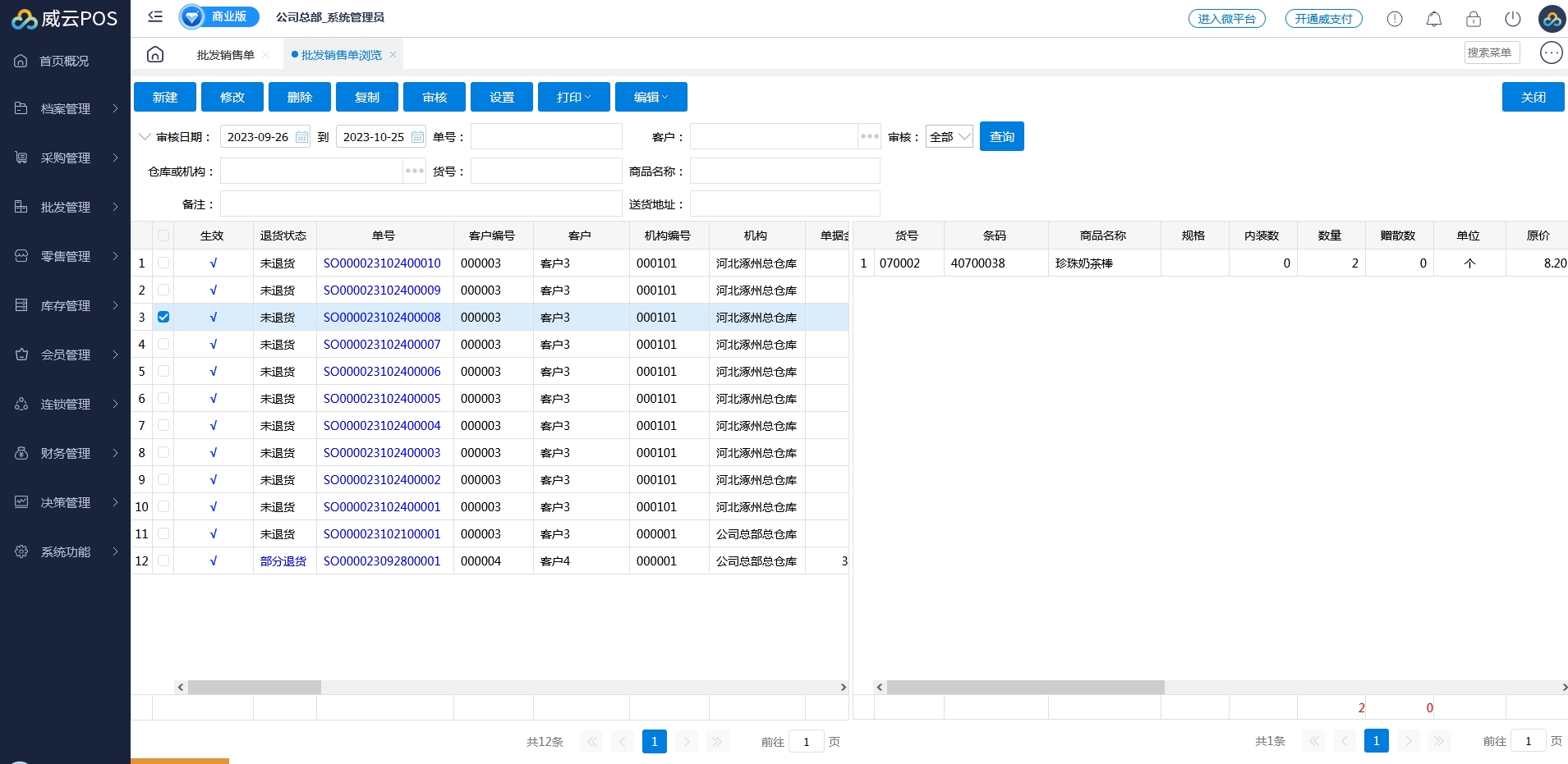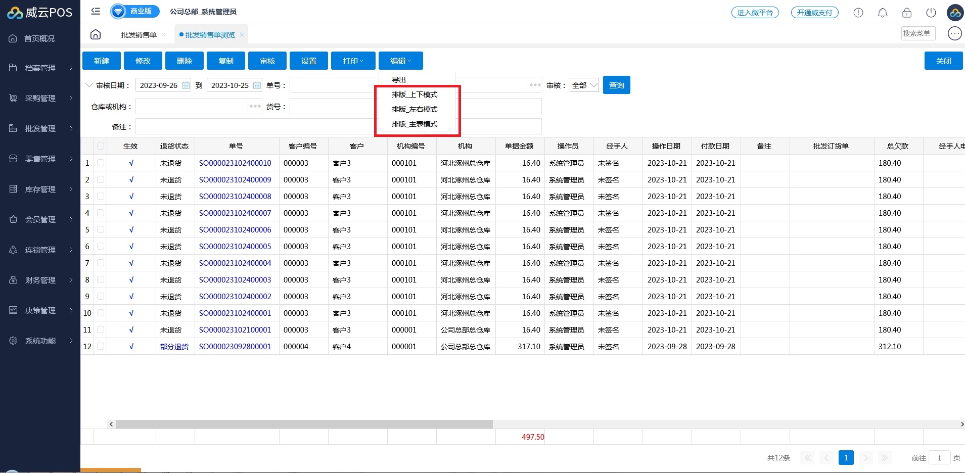10. 威云后臺單據(jù)瀏覽頁面編輯下拉菜單增加了排版模式風格顯示的功能