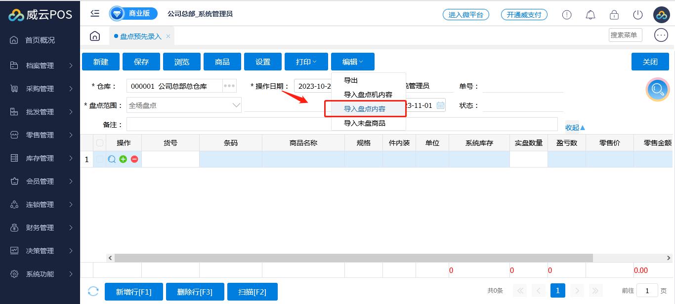 08. 威云后臺盤點預(yù)先錄入增加導入盤點內(nèi)容功能