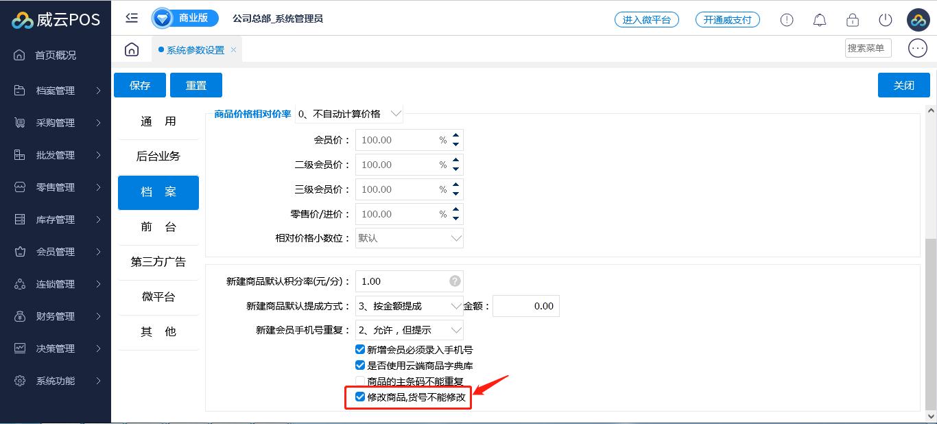 09. 威云后臺系統(tǒng)參數(shù)設(shè)置增加修改商品,貨號不能修改的參數(shù)功能