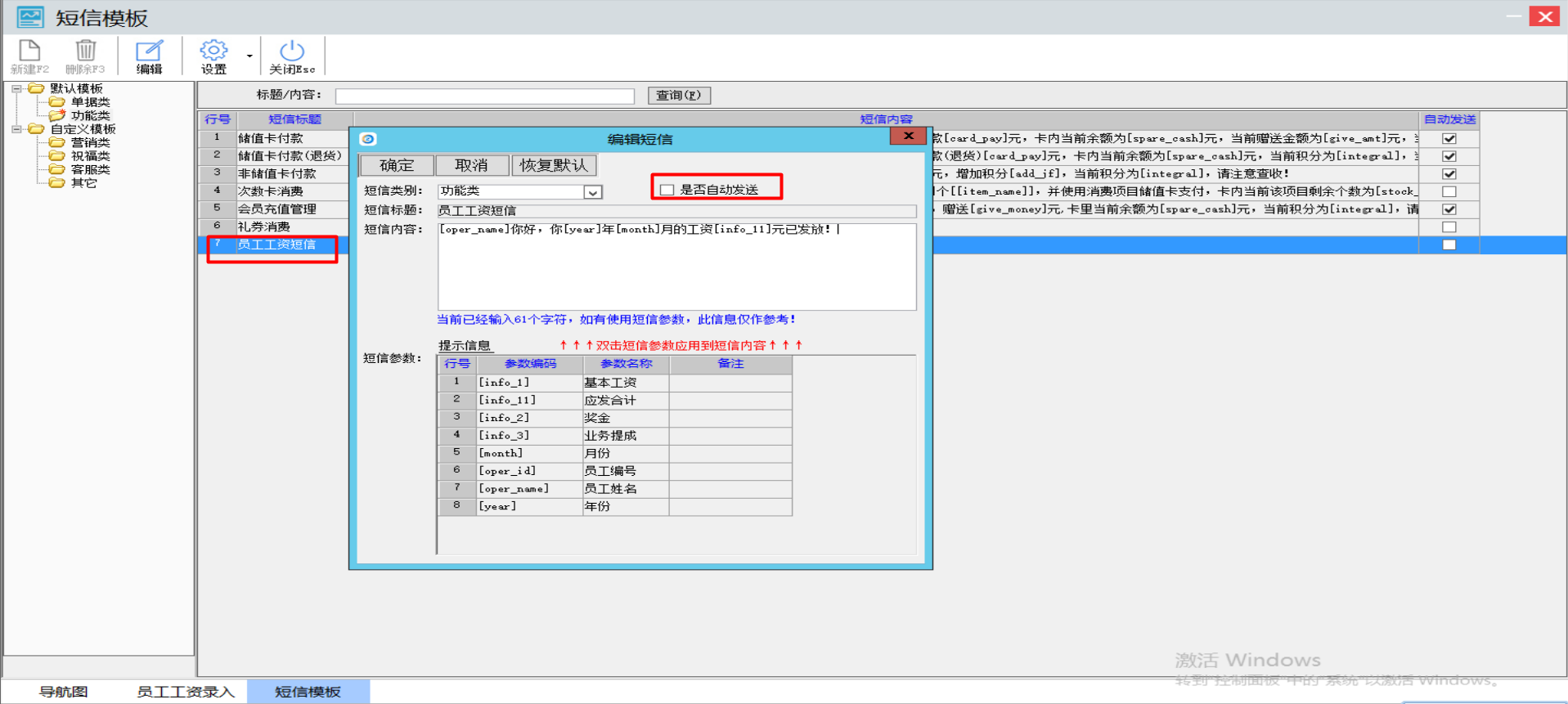 需要先維護(hù)好員工工資短信模版并勾選上自動發(fā)送