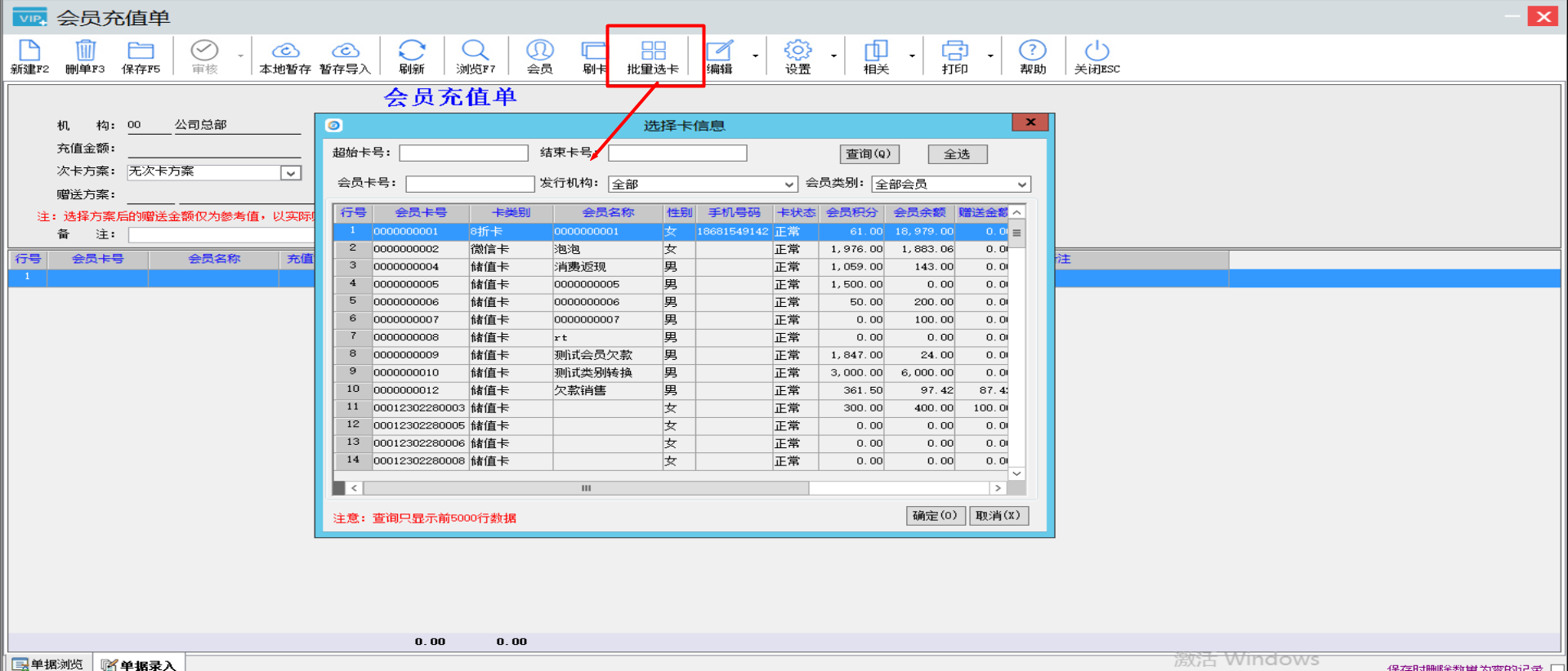 后臺【會員充值單】、【會員積分加減單】增加批量選擇會員卡功能