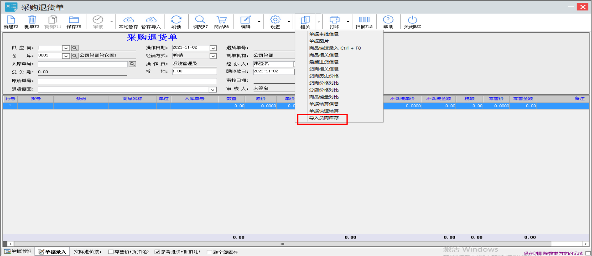 【采購?fù)素泦巍肯嚓P(guān)中增加導(dǎo)入貨商庫存功能,快速清退貨商商品庫存