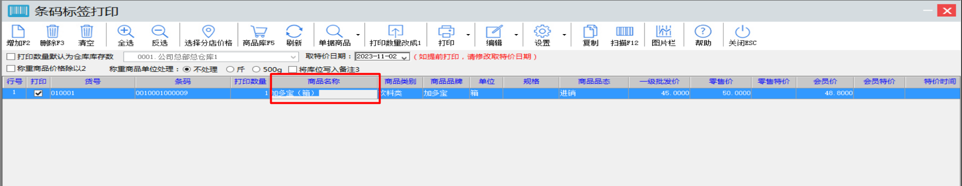 優(yōu)化【條碼標(biāo)簽打印】打印大包裝商品時(shí),名稱取不到大包裝單位商品的名稱