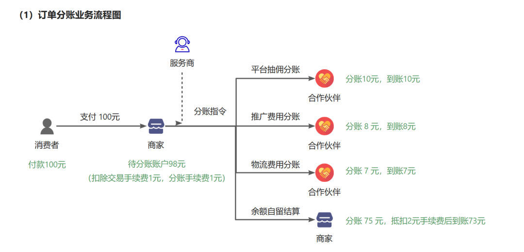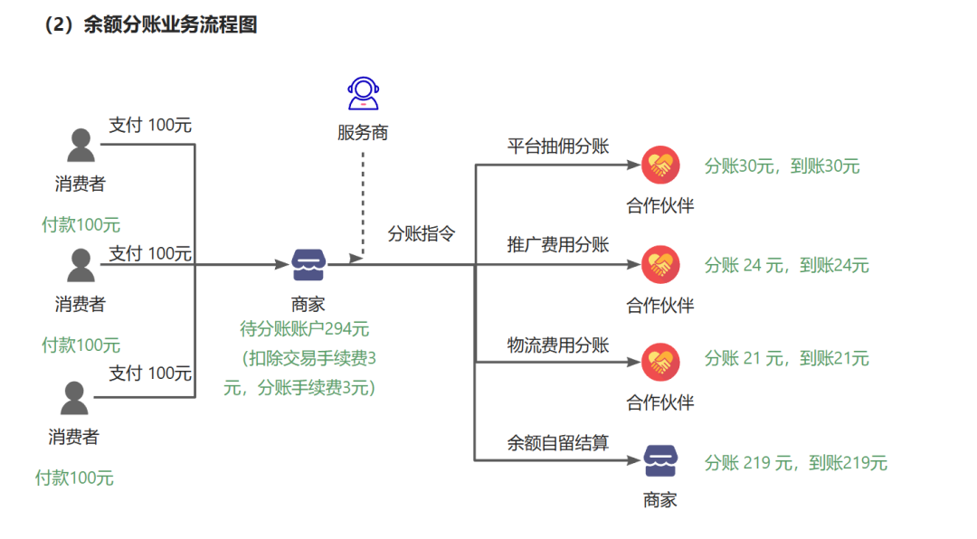 1) 商家的供應(yīng)商給商家提供消費(fèi)產(chǎn)品供應(yīng)服務(wù),商家可通過零售交易款將部分資金分賬給供應(yīng)商。
