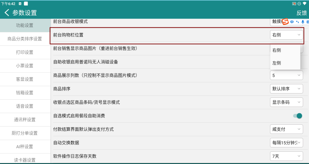 參數(shù)設(shè)置-功能設(shè)置:增加 【前臺購物欄位置】,右側(cè) 或 左側(cè) ,默認右側(cè)