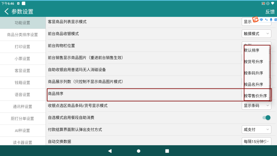 參數(shù)設(shè)置-功能設(shè)置:增加 【商品排序】,支持多種排序方式
