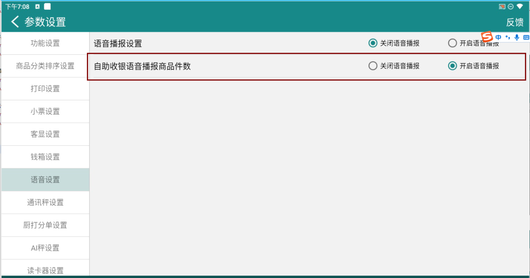 參數(shù)設(shè)置-功能設(shè)置:增加 【自助收銀語音播報商品件數(shù)】