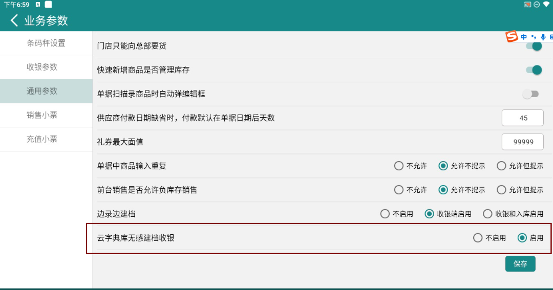 業(yè)務參數(shù)-通用參數(shù):增加【云字典庫無感建檔收銀】