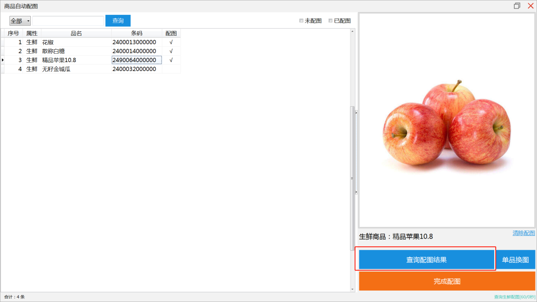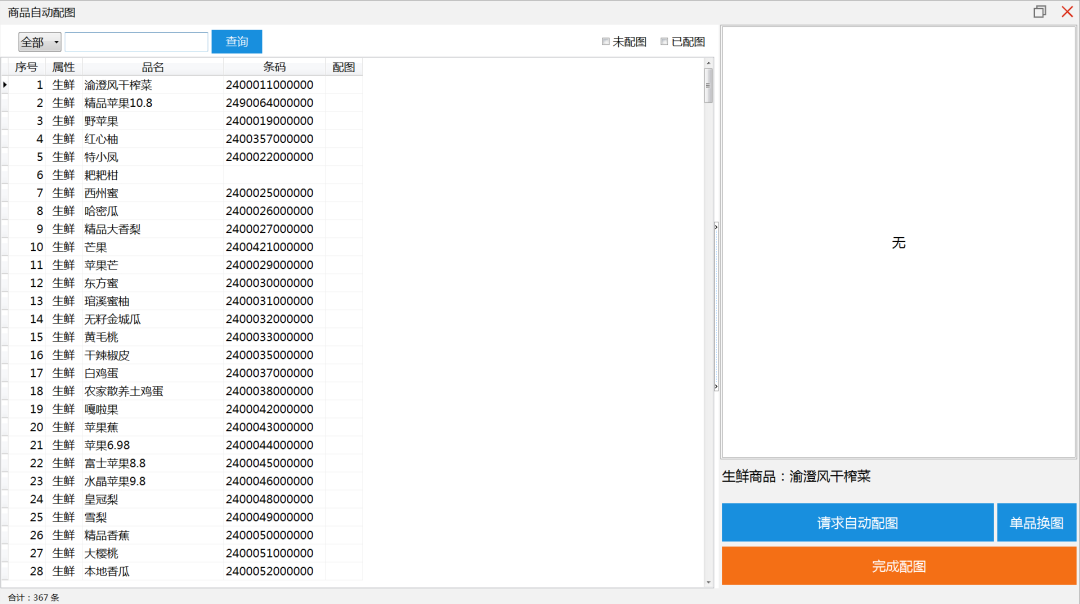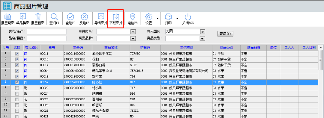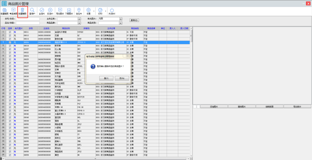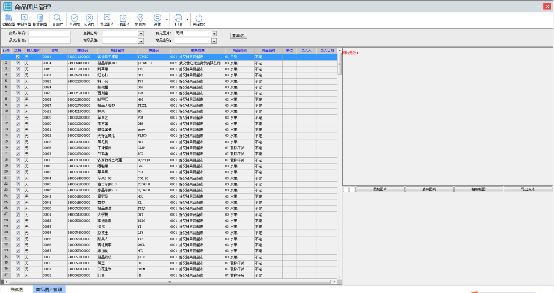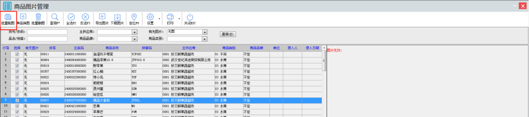商品檔案模塊中打開(kāi)該功能,默認(rèn)查詢沒(méi)有圖片的散稱商品