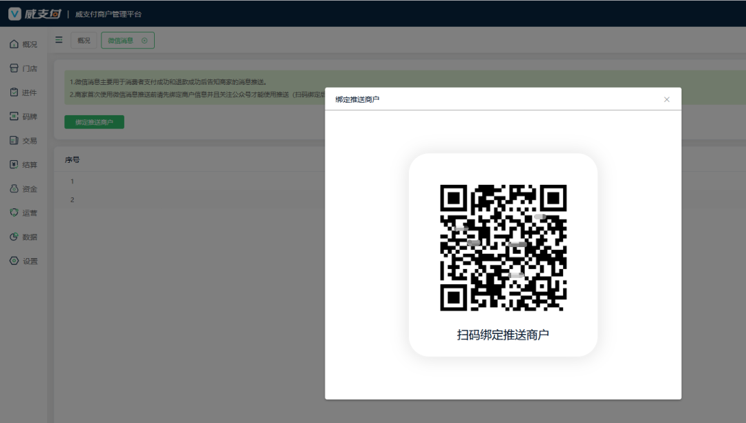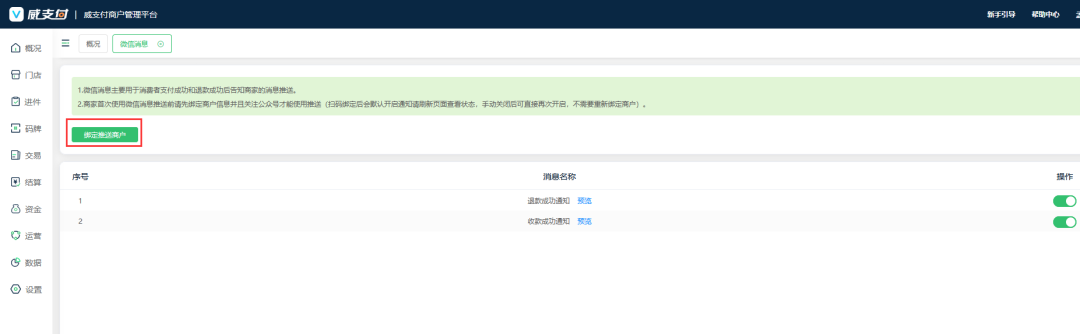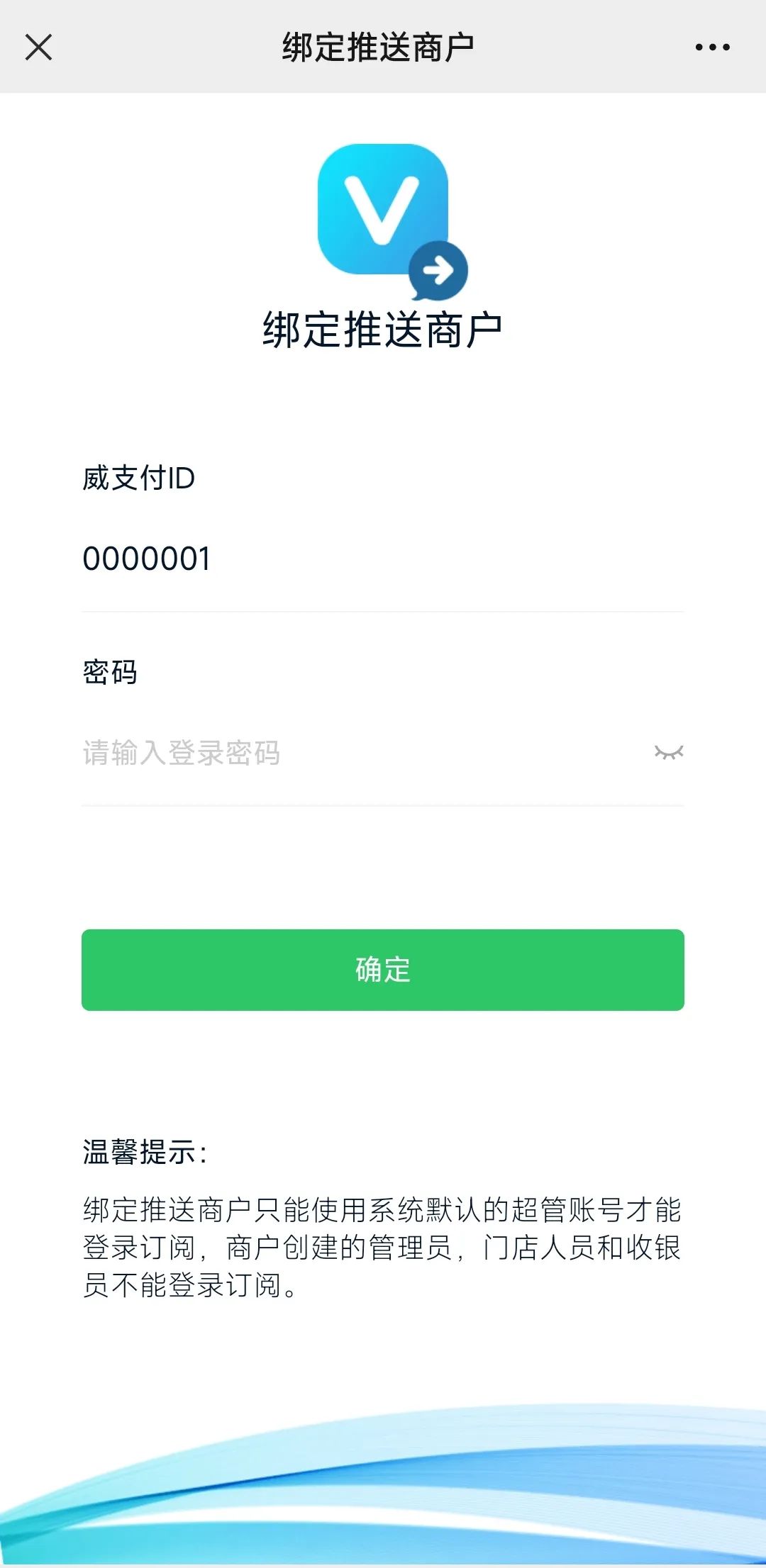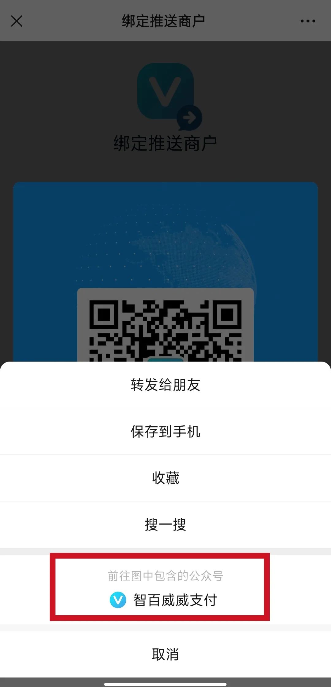 【綁定推送商戶】并關(guān)注【智百威威支付】公眾號