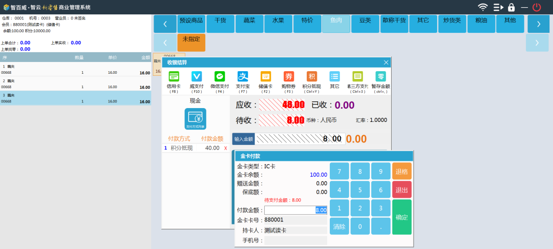 前臺(tái)結(jié)算優(yōu)化優(yōu)化前臺(tái)使用積分抵現(xiàn)付款之后再使用儲(chǔ)值卡余額支付
