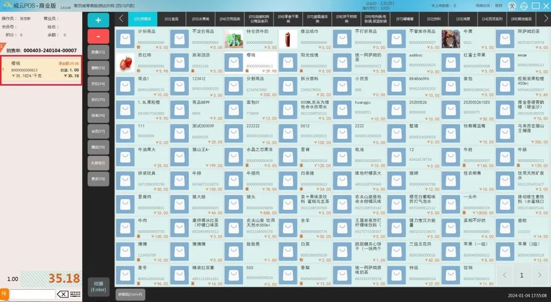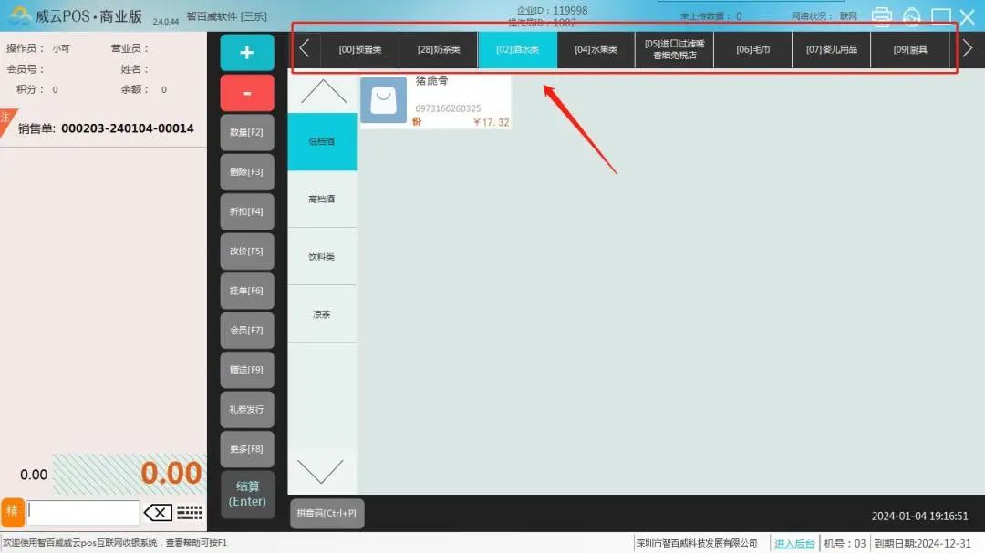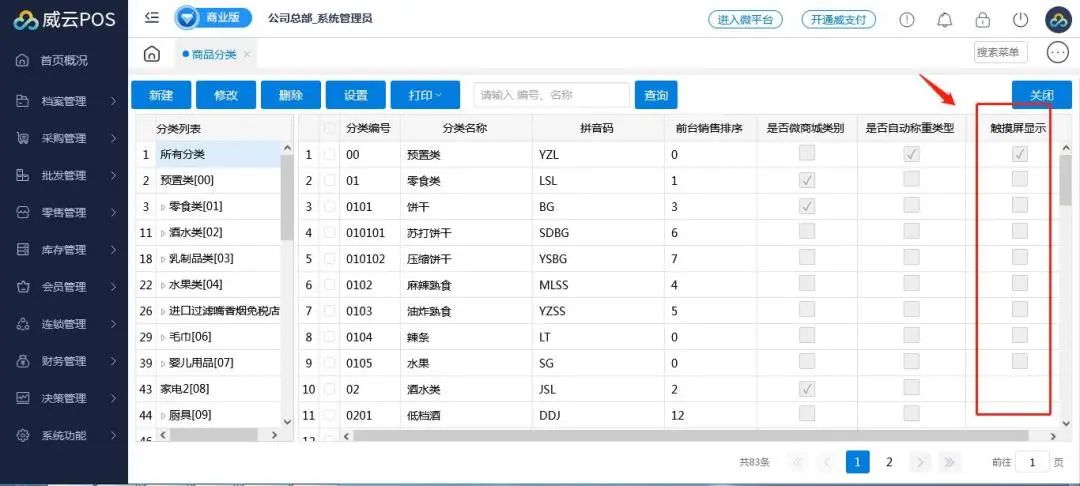 威云pos前臺(tái)觸摸界面增加了可以顯示指定商品類別的功能