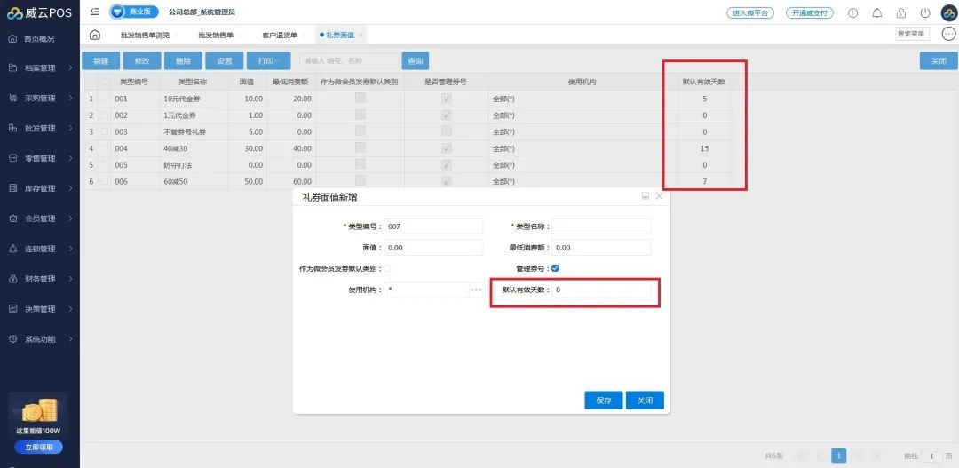 威云pos前臺(tái)禮券有效期增加了從禮券發(fā)行當(dāng)天開始計(jì)算有效期的功能
