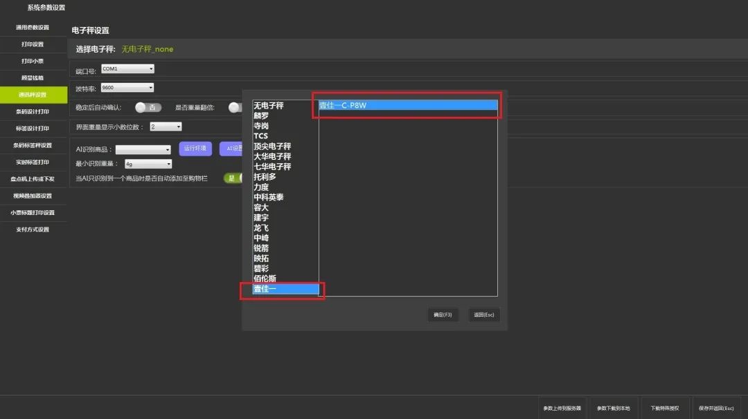 威云pos前臺(tái)增加了壹佳一C-P8W 型號(hào)通訊秤對(duì)接的功能