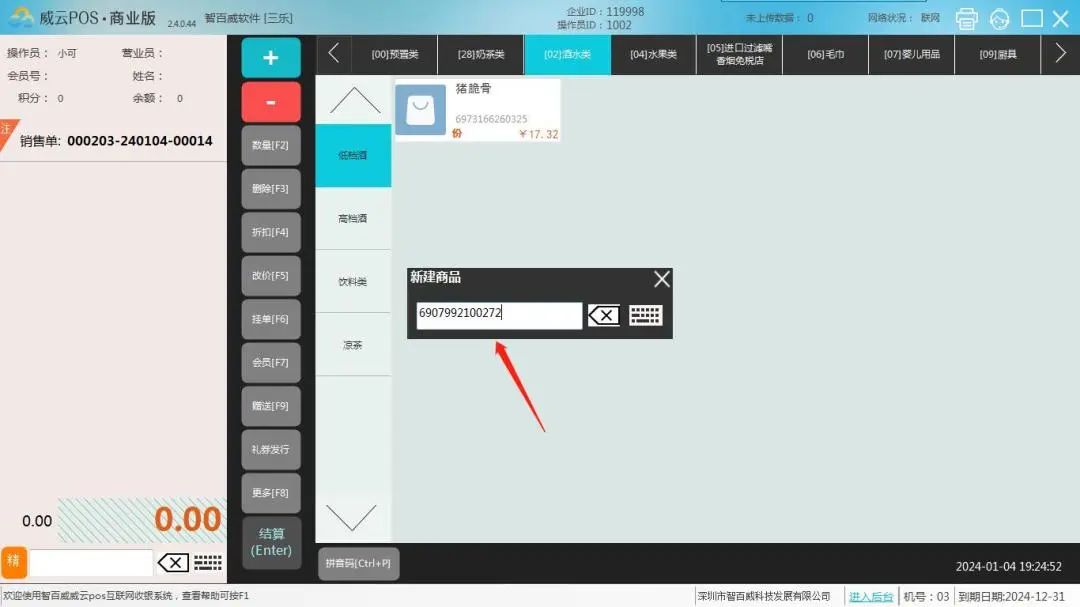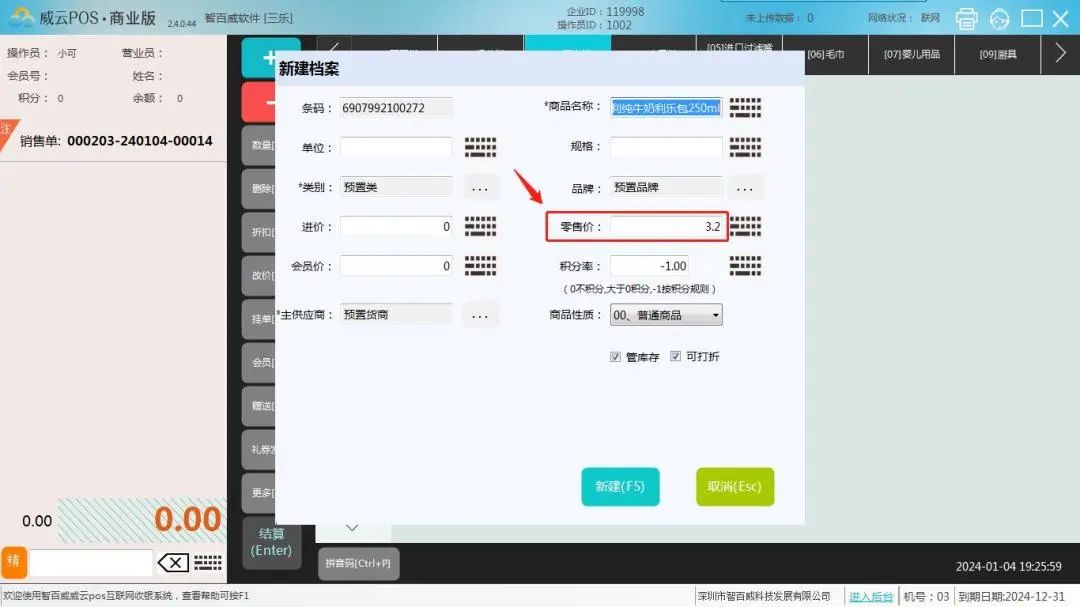 威云pos前臺(tái)前臺(tái)新建商品檔案增加了根據(jù)云商品庫(kù)帶出建議零售價(jià)的功能