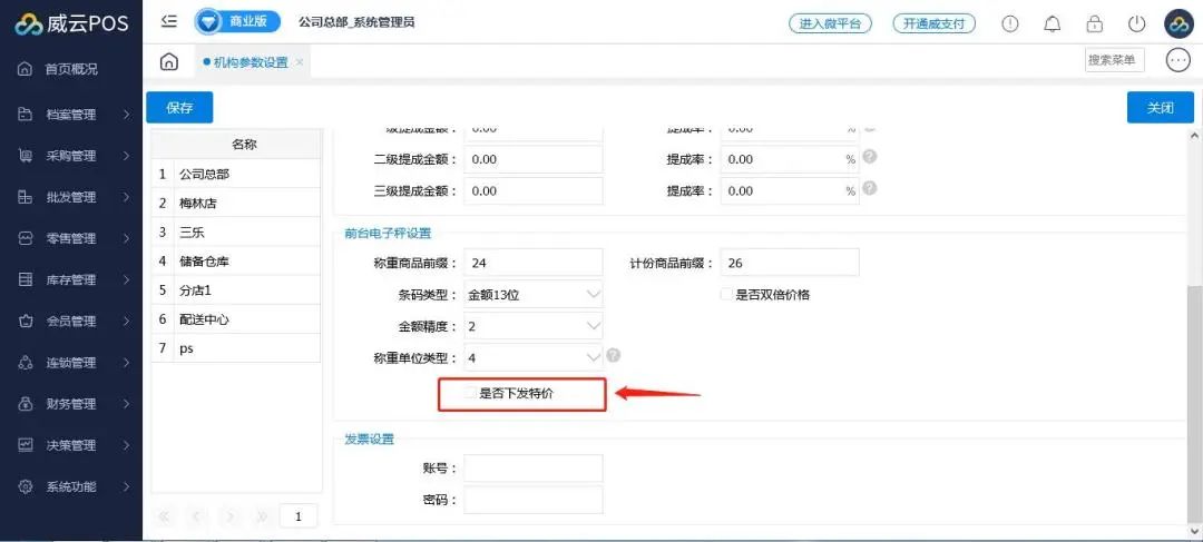 威云POS前臺(tái)條碼標(biāo)簽秤增加了可以下發(fā)特價(jià)的功能