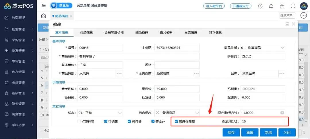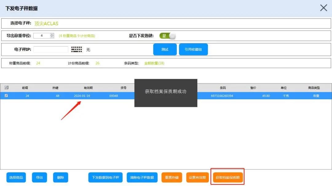 威云POS前臺(tái)條碼標(biāo)簽秤增加了下發(fā)電子秤數(shù)據(jù)時(shí)可以獲取檔案保質(zhì)期的功能