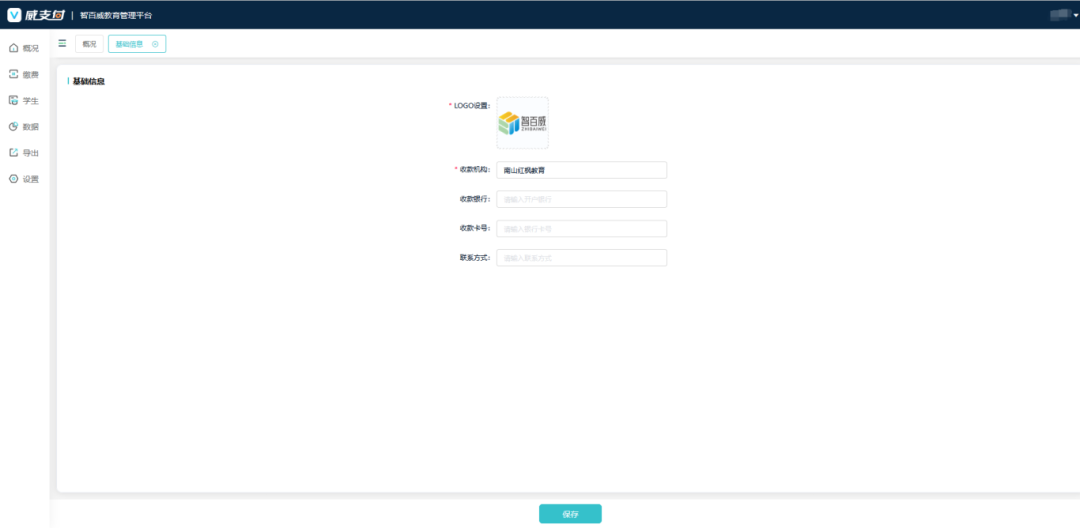 系統(tǒng)后臺可上傳教培機(jī)構(gòu)LOGO及教培信息,在家長繳費時,即會展示出教培信息。