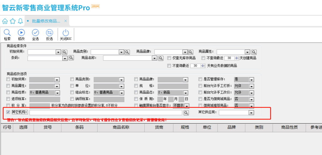 【批量修改商品信息】增加批量修改其它供應(yīng)商功能。