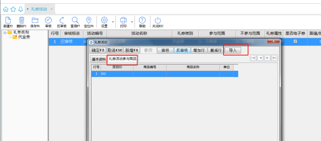 【禮券活動(dòng)】中參與/不參與商品的條件增加導(dǎo)入功能。
