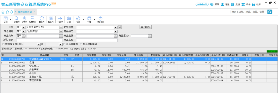 新增【庫(kù)存綜合查詢】報(bào)表,綜合查詢商品庫(kù)存、最后動(dòng)銷時(shí)間等。