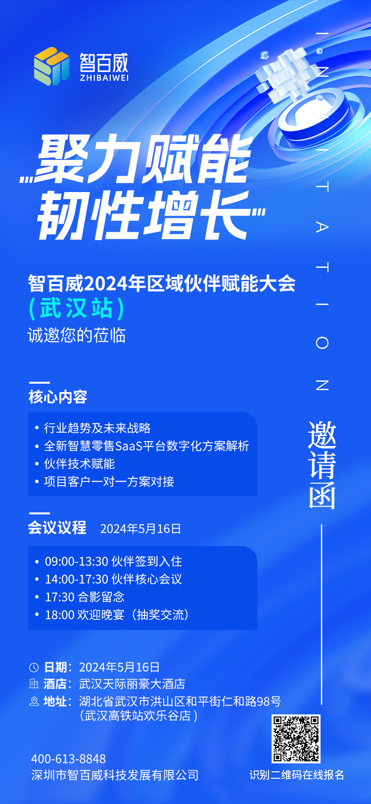 在此,智百威誠摯的邀請湖北省、湖南省、江西省的零售人們前來參會。我們期待與您共同探討科技創(chuàng)新的前沿趨勢,剖析門店數(shù)智化、全面SaaS平臺化的原由,以及如何將這些技術落地到門店中,幫助企業(yè)實現(xiàn)數(shù)智化增長。