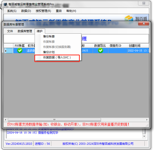 拿到備份數(shù)據(jù)后可以在服務(wù)器中進(jìn)行恢復(fù):點(diǎn)擊“維護(hù)--恢復(fù)數(shù)據(jù)--選擇文件--開(kāi)始”,導(dǎo)入完成即可。