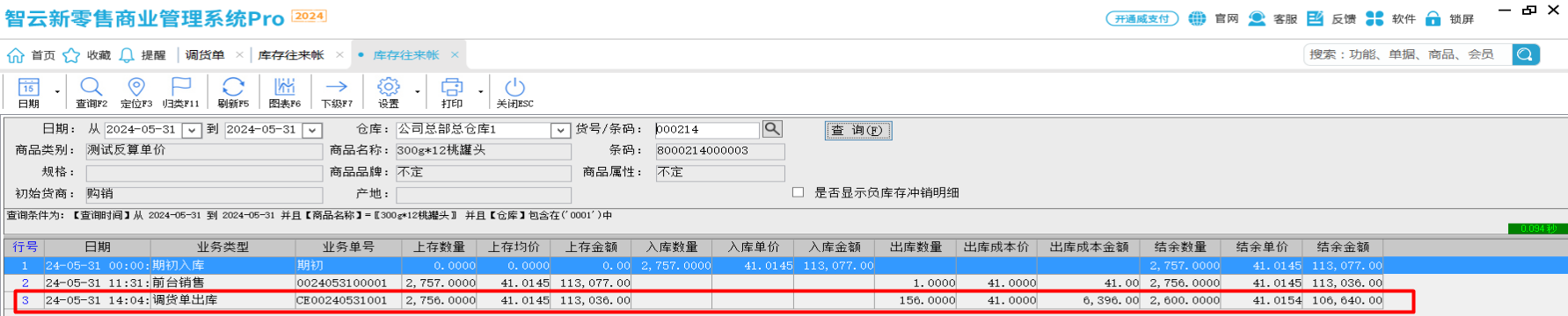 庫存往來帳表中可以查到調(diào)貨商品的記錄以及當(dāng)時的成本金額、單價