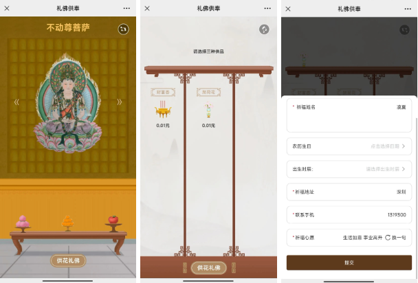 搭建善信達數(shù)字宗教服務平臺的線上客堂后,文峰寺院的信眾在線上便能選擇供奉,如文峰寺當下為信眾開放了供花供果、隨時功德的線上祈福供奉。