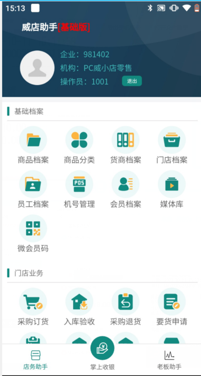 注意:如果后臺(tái) “啟用單瓶營銷功能”參數(shù)切換勾選 或 不勾選后 ,店務(wù)助手需要返回到主界面(下圖這個(gè)界面),再點(diǎn)擊掌上收銀才參數(shù)生效