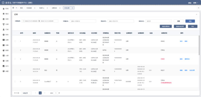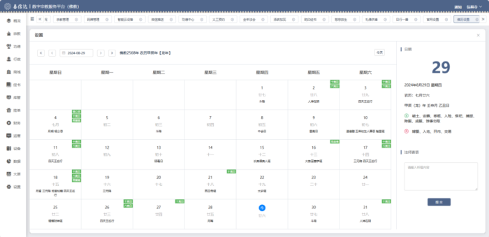 法事活動新增后臺審核、收費(fèi)模式設(shè)置、基礎(chǔ)法金、法事回傳、編輯等功能。