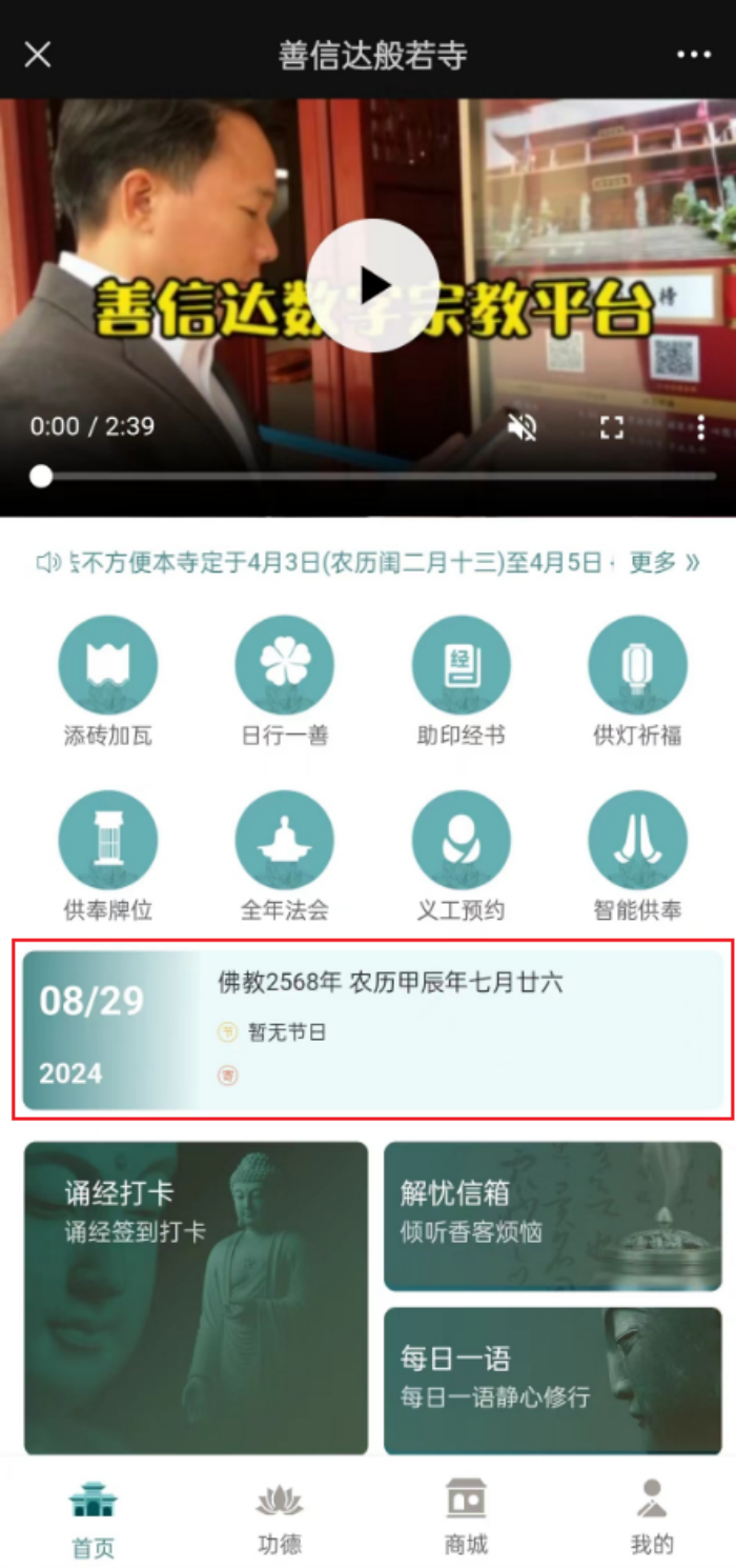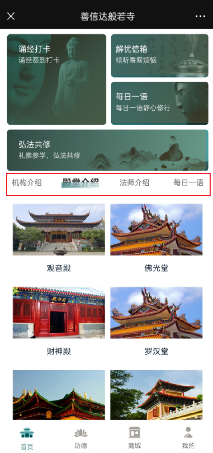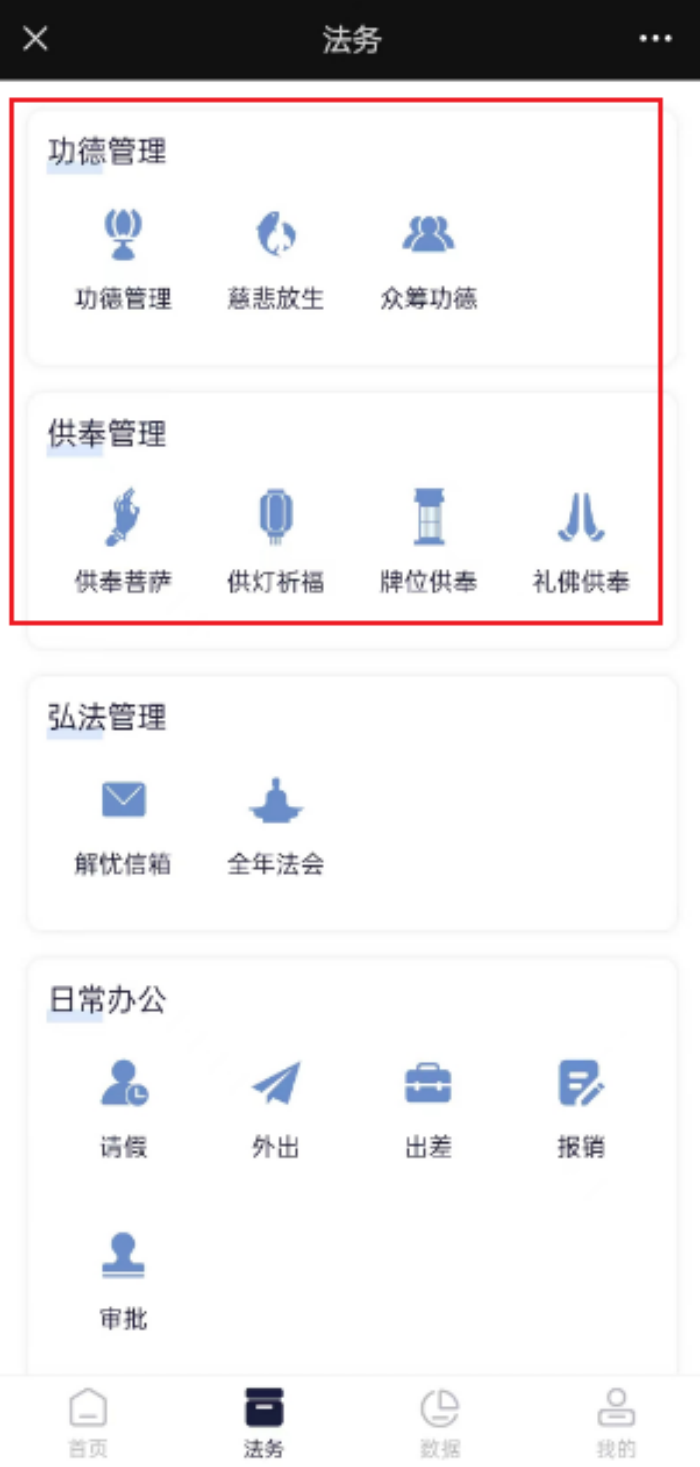 云服務(wù)管家功能上新:供奉菩薩、供奉神像、供燈祈福、禮佛供奉、全年法會、供奉牌位、眾籌功德、慈悲放生、佛事功德、功德記錄等。