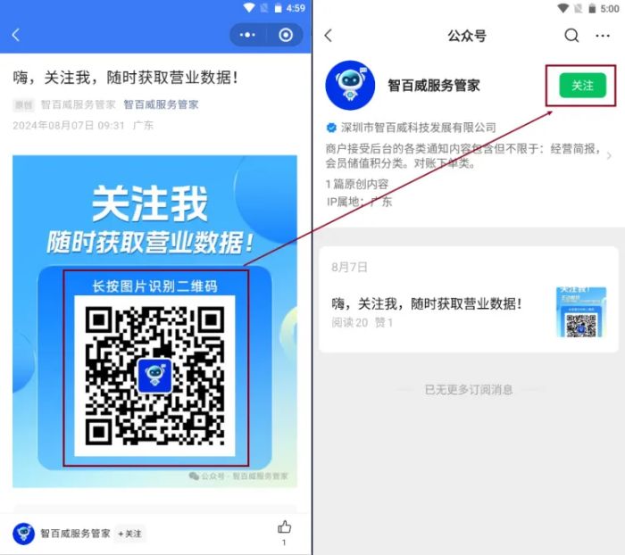 3)長(zhǎng)按二維碼圖片關(guān)注智百威服務(wù)管家