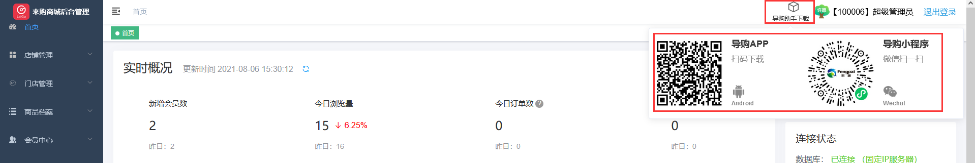 導購助手有APP和小程序兩種載體,商戶在后臺可直接掃碼下載安卓版APP,或掃碼體驗,也可在下面掃碼體驗。