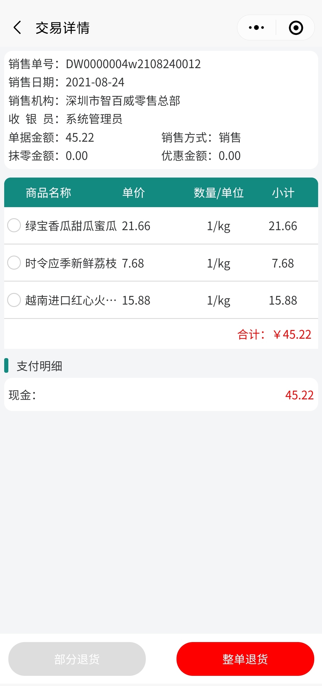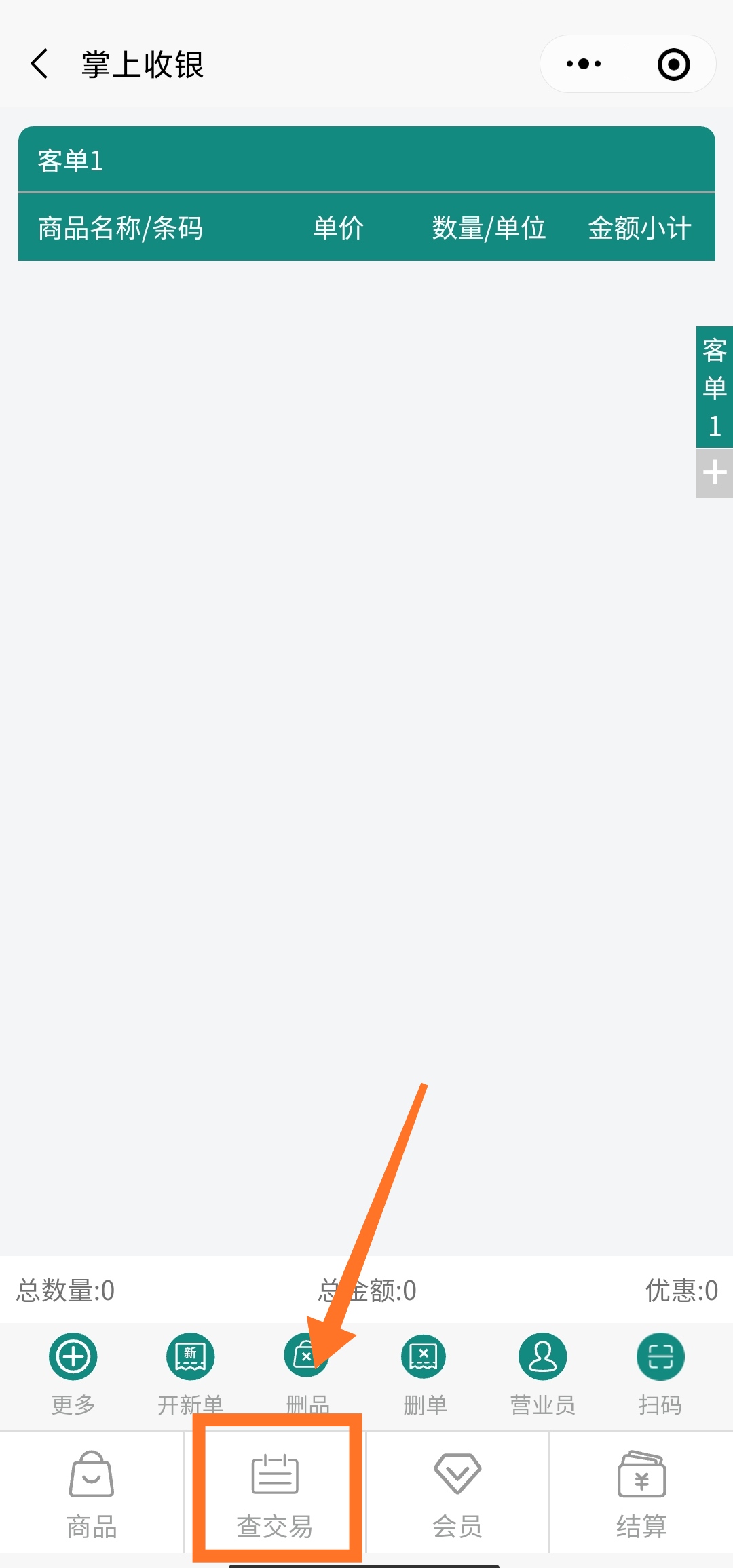 收銀交易數(shù)據(jù)不用另外再翻找,在當(dāng)前收銀界面點“查交易”便能查詢相應(yīng)的收銀流水以及當(dāng)單的收銀明細。