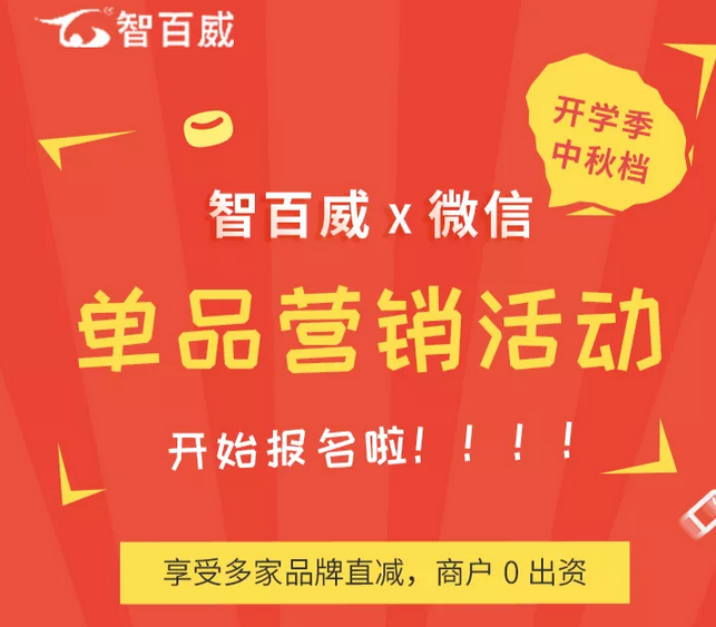 智百威威支付聯(lián)合微信推出的開學(xué)季和中秋單品營銷活動即將開啟,有意向的商家請聯(lián)系業(yè)務(wù)人員報名。