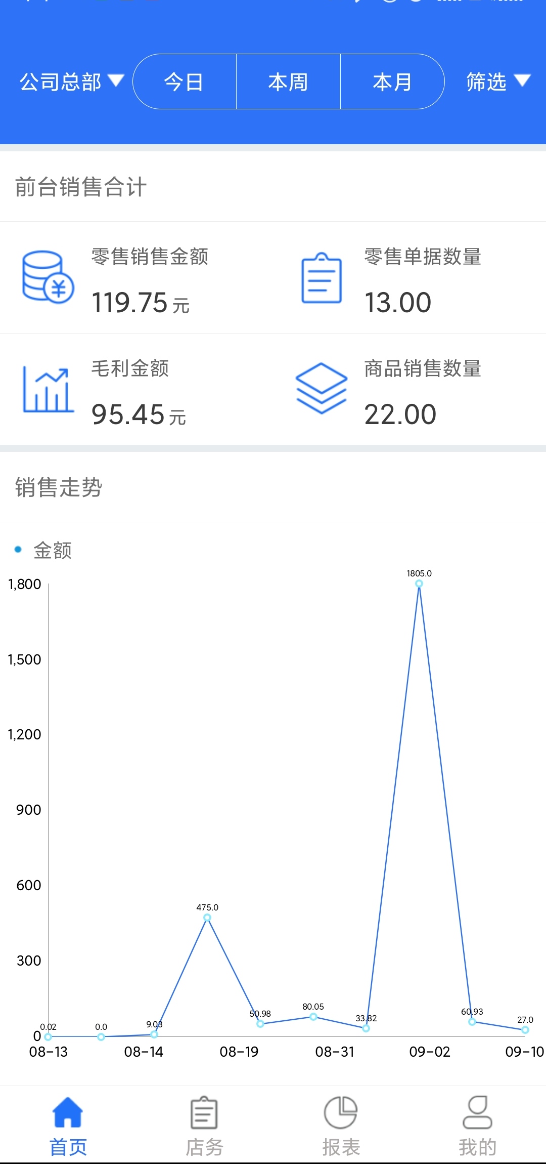 店務(wù)助手里有數(shù)十種業(yè)務(wù)報(bào)表,每份報(bào)表提供多維度的分析,讓企業(yè)隨時(shí)可實(shí)時(shí)掌握企業(yè)經(jīng)營狀態(tài),提高管理經(jīng)營決策。