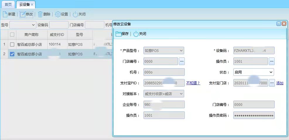 合作伙伴在威支付后臺為如意客戶錄入設(shè)備信息