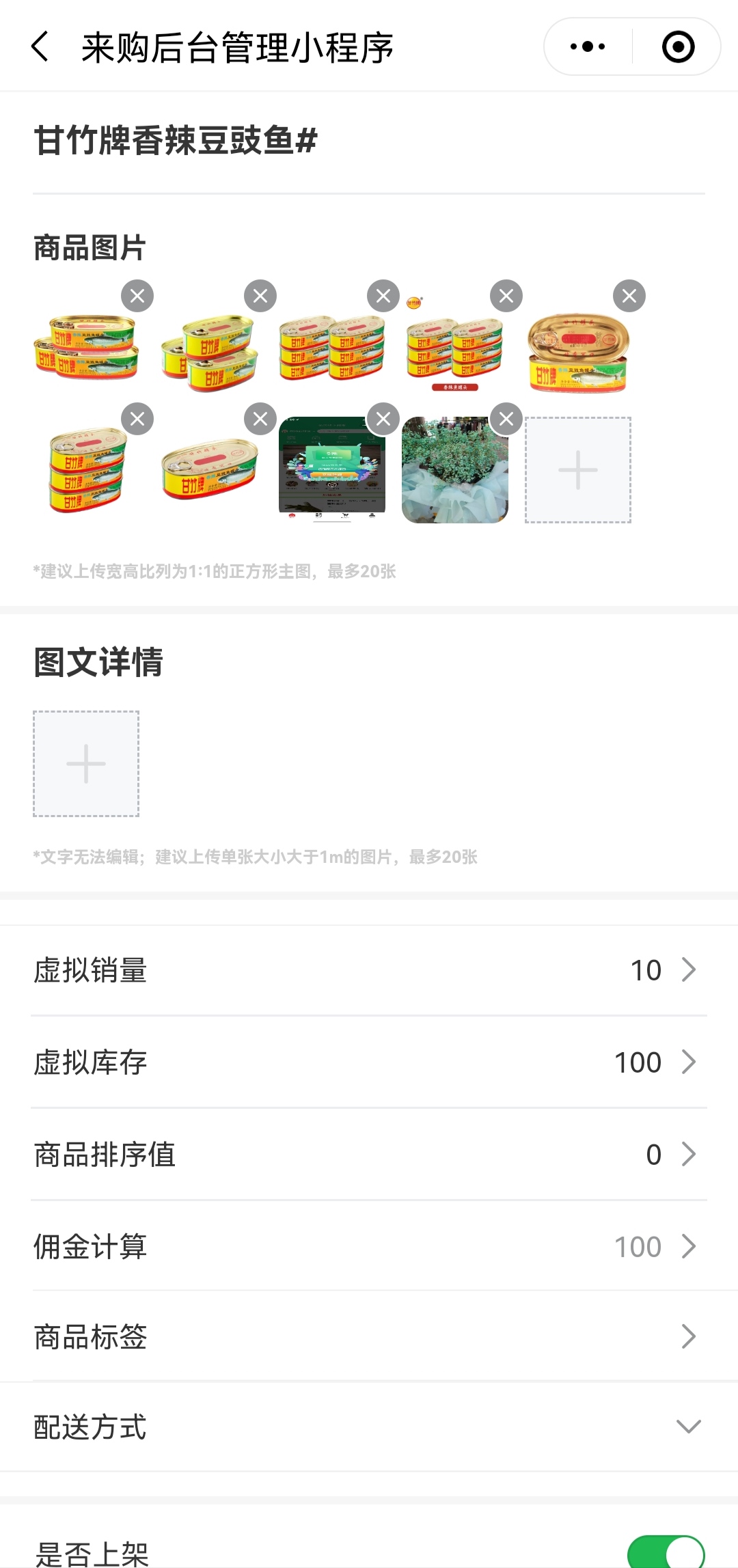 來(lái)購(gòu)后臺(tái)管理小程序可以邊拍照邊上傳至商品檔案里了,上傳商品圖片變得更輕松了。▼ 來(lái)購(gòu)后臺(tái)管理小程序上傳商品圖片界面