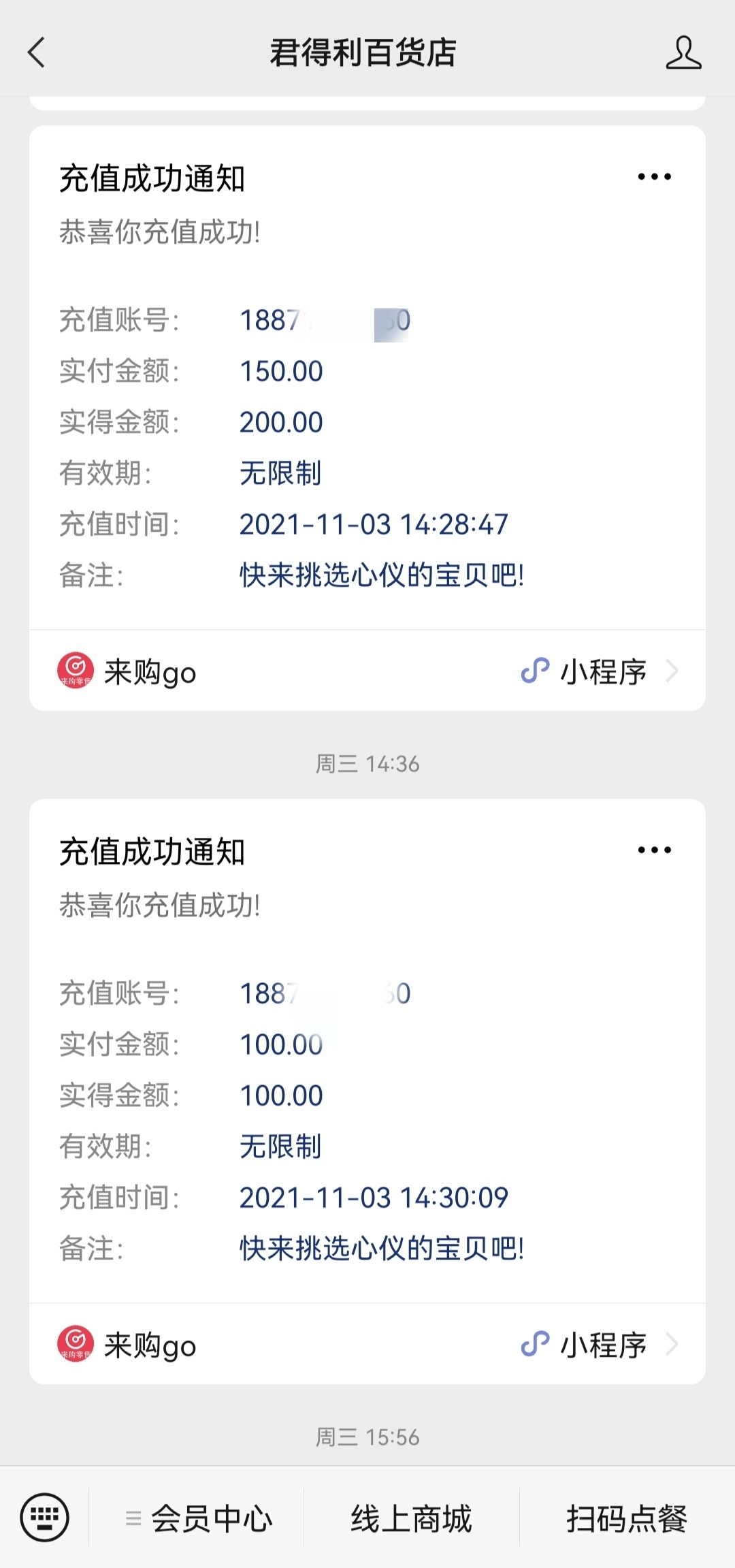 會(huì)員在線下門(mén)店消費(fèi)后,會(huì)發(fā)送會(huì)員儲(chǔ)值、積分變動(dòng)通知至?xí)T微信。實(shí)現(xiàn)線上線下會(huì)員數(shù)據(jù)統(tǒng)一管理。